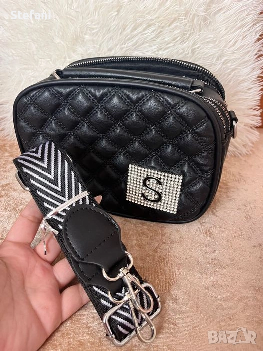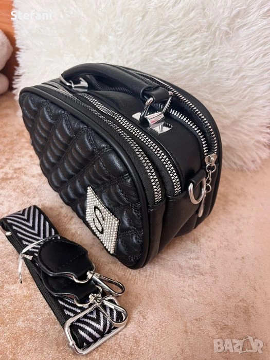 Дамска черна чанта с няколко преградки. Удобна и стилна.