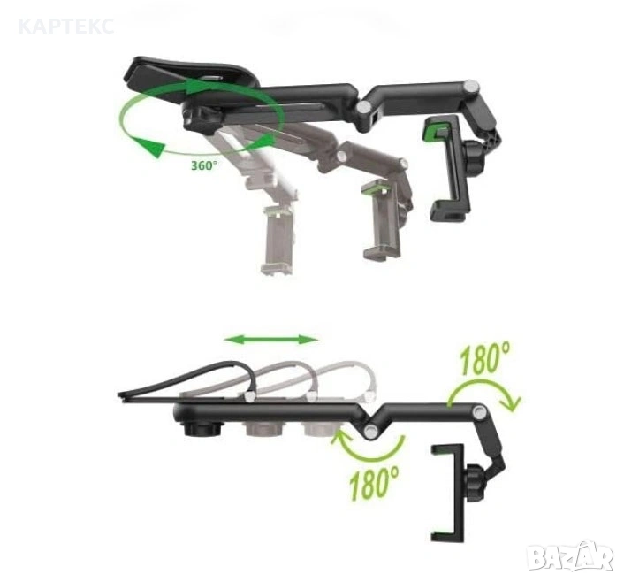 360-градусов въртящ се дизайн с две регулируеми рамена на 180 градуса, за най-добрия ъгъл на гледане.