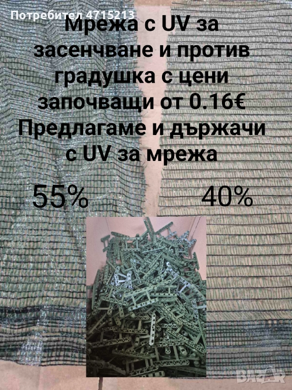 Мрежа 40 % - цена на цяла ролка - 0.16€ кв./м.