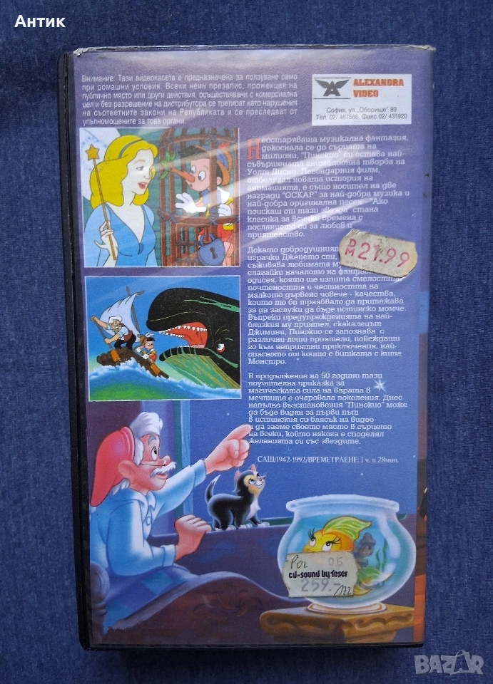 Видеокасета VHS Пинокио Walt Disney → Обява 54292720