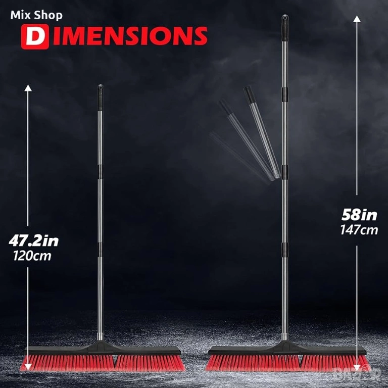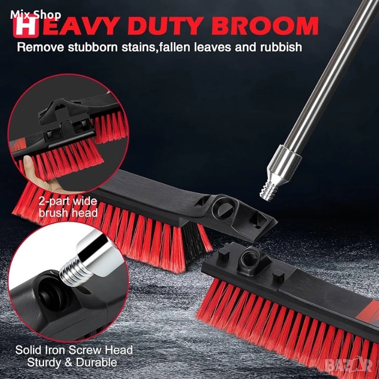 Регулируема дръжка с дължина 147 см: Високоякостната дръжка от неръждаема стомана се адаптира лесно към интензивна работа по метене, без да се счупи. Резбованият край е здраво вграден в главата на метлата, което не позволява лесното ѝ разхлабване по време на употреба.