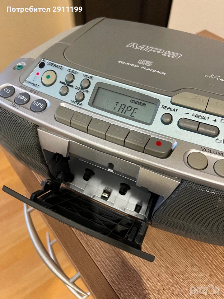 Cassette-corder / MP3 / CD-R/RW Playback / FM Radio / Mega Bass Отлично работещ