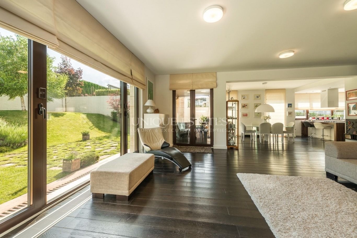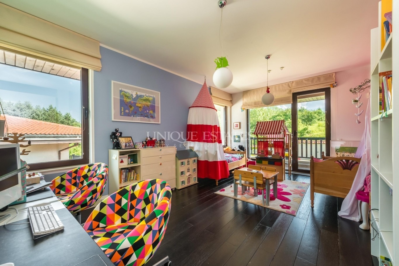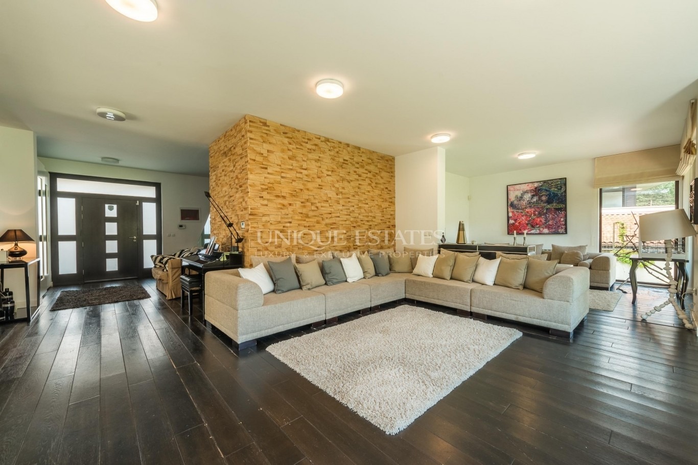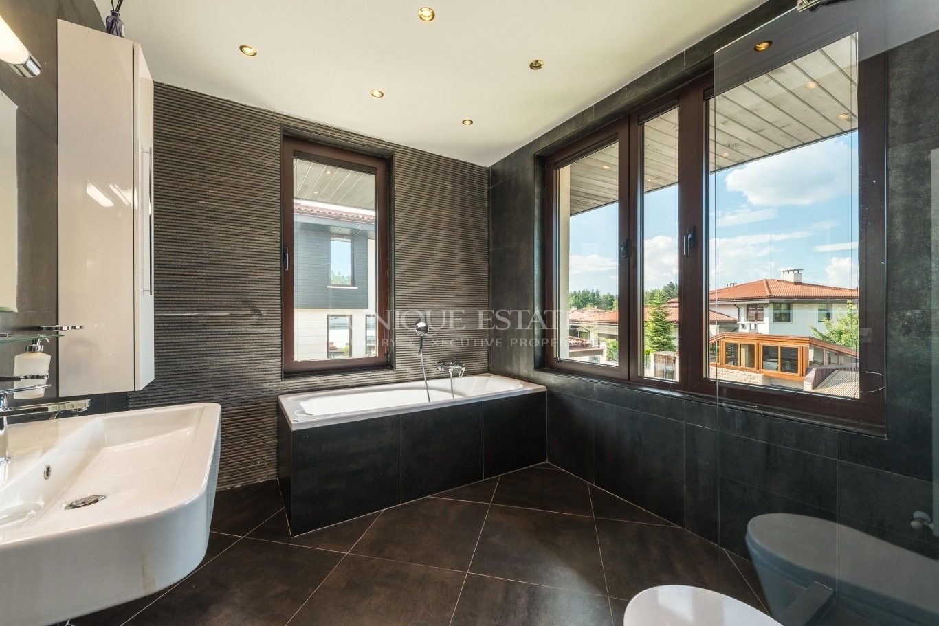 Unique Estates представя на Вашето внимание къща под наем в луксозен затворен комплекс с прекрасен двор. Къщата е самостоятелна и с много добро разпределение, с пет спални. Предлага се обзаведена.