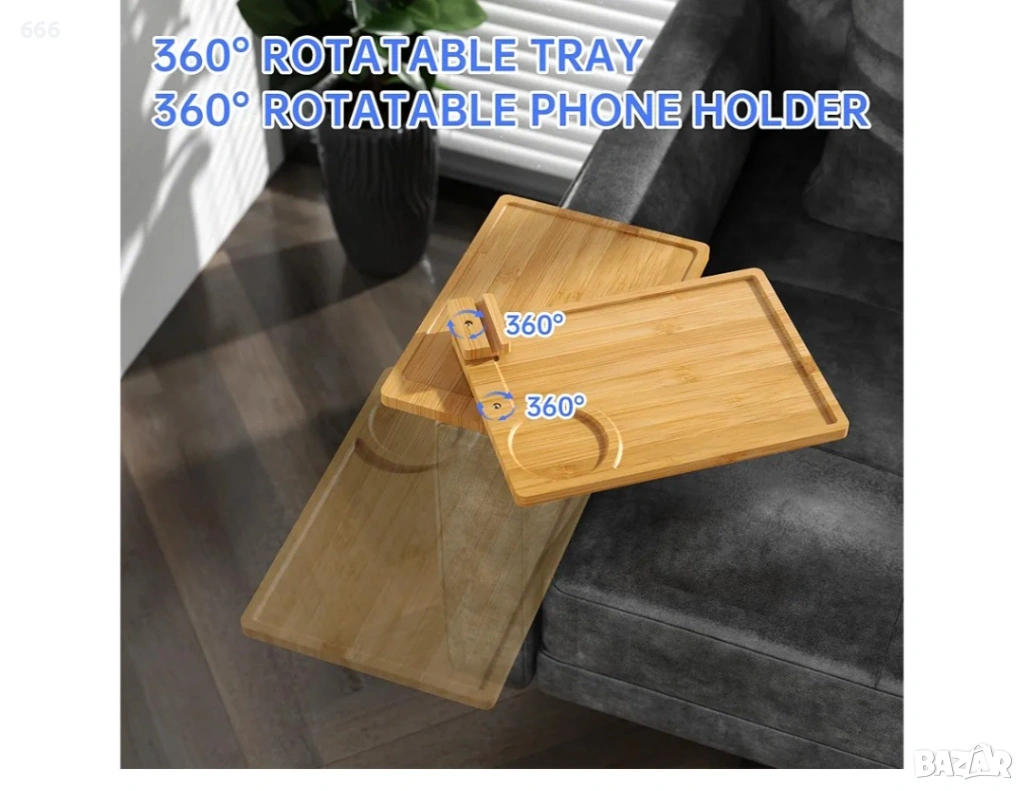 Подобрени практични характеристики: Със заоблени ъгли, поставка за чаша, въртяща се поставка за телефон и въртящ се панел, всички проектирани да подобрят цялостното ви потребителско изживяване. Няма нужда да мърдате - всичко е на една ръка разстояние! Това е идеалното решение за малки пространства или ситуации, където няма място за странична масичка.