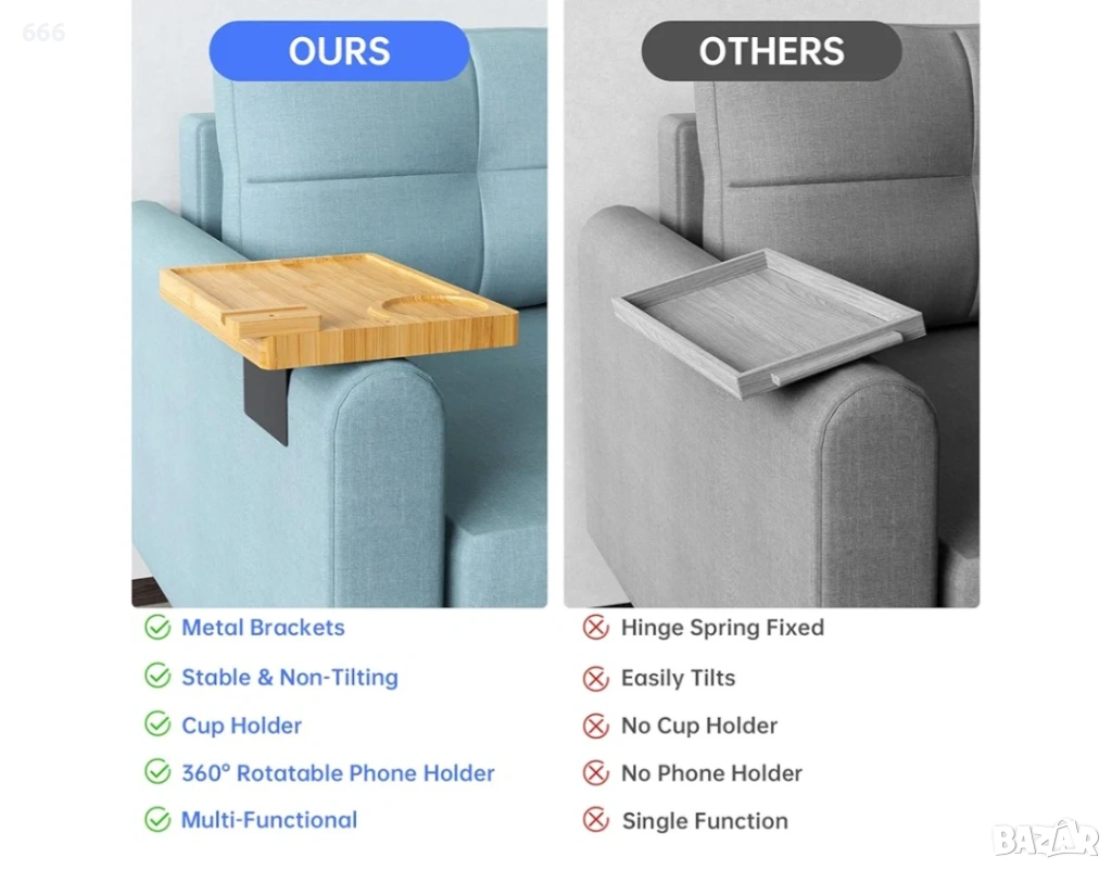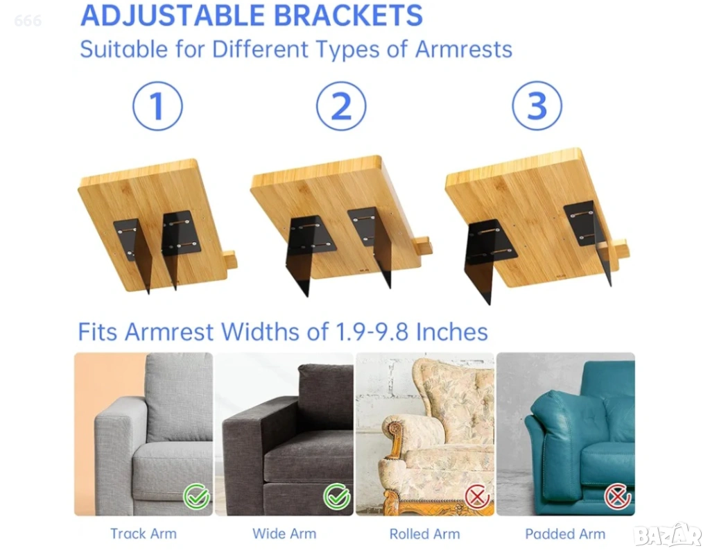 Приятно напомняне: Този продукт е предназначен за дивани с прави подлакътници. Може да не е подходящ, ако подлакътниците ви са с неправилна форма или кръгли.