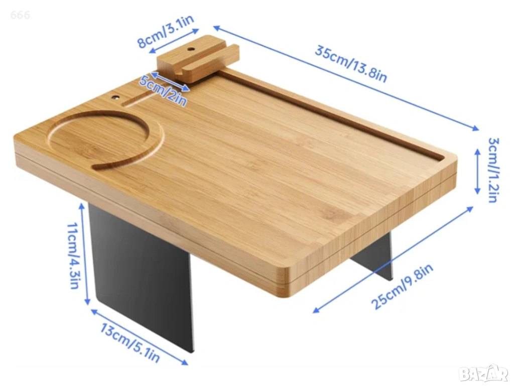 Адаптира се към различни условия: Нашата бамбукова поднос за диван се предлага с регулируеми скоби, които пасват на подлакътници с ширина между 4,8 и 24,9 см. Панелът е с размери 35 x 25 см (13,78 x 9,84 инча), което го прави подходящ за повечето домашни дивани, включително тези с тесни подлакътници.