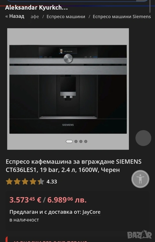 Индивидуална настройка на температурата на кафето: 3 степени; преварена вода: 4 стъпки