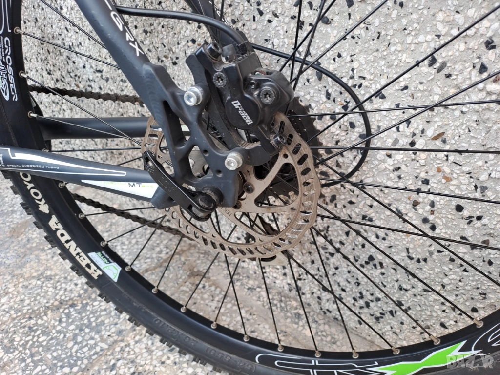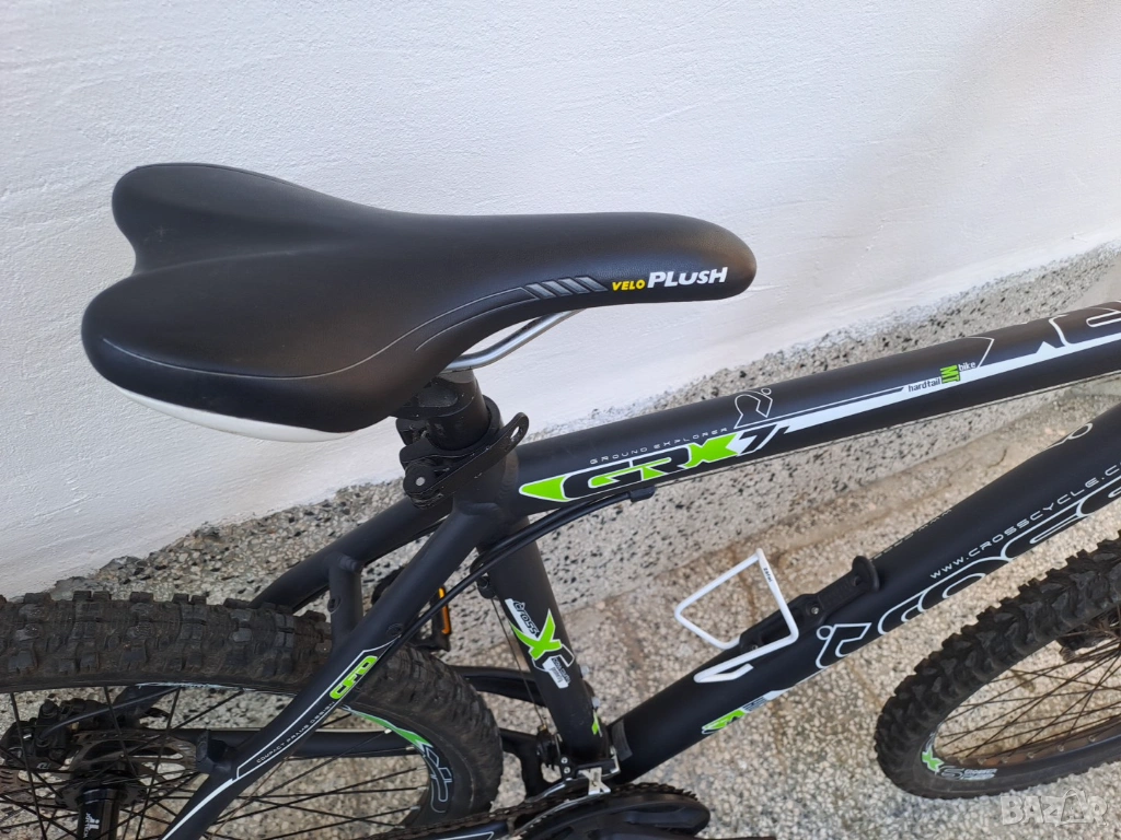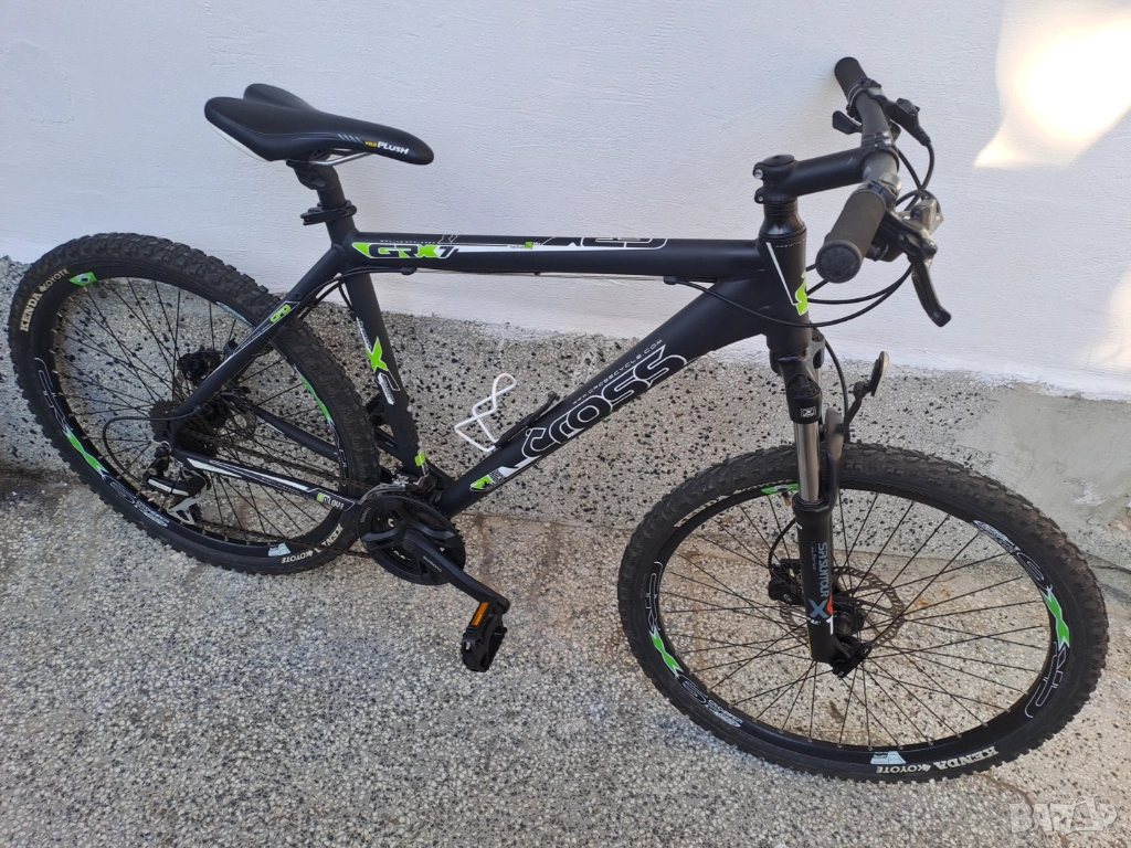 Алуминиев велосипед Cross GRX7 с гуми 26 цола. Скорости 3х8 с палцови команди, амортисьорна вилка и хидравлични дискови спирачки. Размер на рамката 52 км. подходящ за хора с височина над 1,75 м. В отлично техническо състояние.