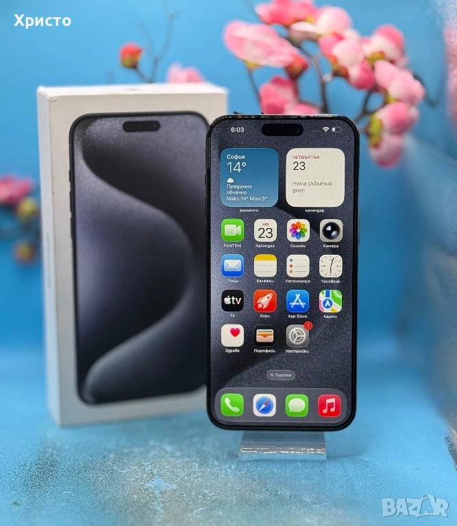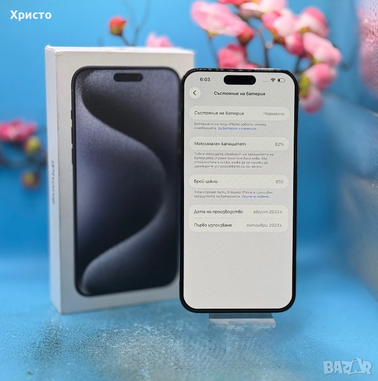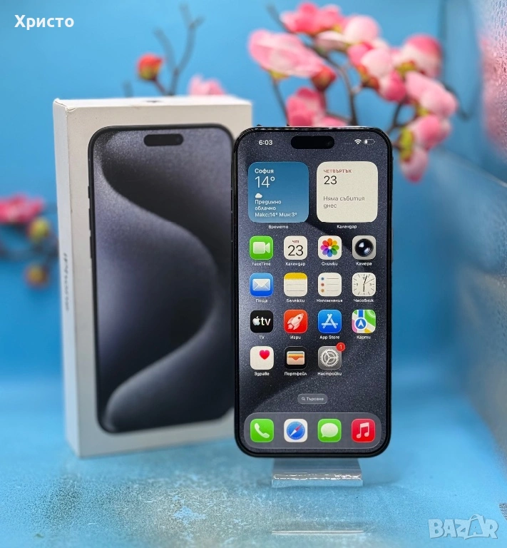 Продавам Apple iPhone 15 Pro Max в перфектно състояние – устройството е като ново. Използван е изключително внимателно и винаги с протектори, което гарантира отличен външен вид без забележки. Телефонът работи безупречно с всички мобилни оператори, всички функции са напълно изправни. Никога по никаква причина не е бил на сервиз и не са извършвани ремонти. Животът на батерията и циклите на зареждане могат да се видят на една от снимките – всичко е показано коректно. Продава се в комплект с оригинална кутия, без зарядно. Без бартери!!!