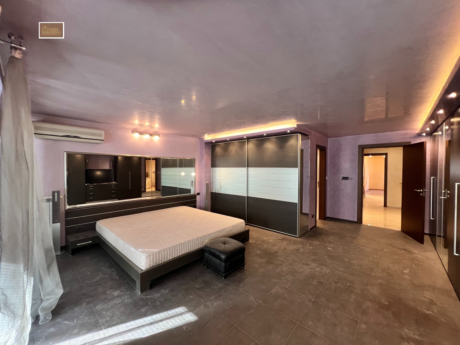 'Сандер Корект' Ви представя за продажба просторен тристаен апартамент /извършено е преустройство в 2-стаен/, находящ се в отлично поддържана сграда солидно строителство с хубави общи части и асансьор, в непосредствено близост до Южния парк и на метри от Басейна Спартак. Апартаментът е с изложение изток към широк вътрешен двор, и запад с усещане за простор към парка. ЗП 126кв.м. по нотариален акт. Висок клас входна врата DIERRE. Разпределението е както следва: голямо входно антрена гранитогрес с много гардероби, направо луксозна и просторна тоалетна за гости с мокро помещение и отоплителна инсталация. Надясно се влиза в огромна всекидневна с кухня, трапезария и хол /италианска поръчкова кухня с неизползвани уреди/, усвоен балкон, пълно обзавеждане на дневната част, функционираща камина.Наляво от входното антре се намира просторна спалня с много гардероби, пълно обзавеждане, остъклена тераса, и огромна баня с хидромасажна вана и нова душ кабина. Жилището е на естествен паркет, скъп гранитогрес, мазилки и бои, и почти не е ползвано през годините.Прилежащо мазе и възможност за покупка на подземен гараж на отделна цена. Апартаментът може да се върне лесно в предишния си вид като тристаен, разполагаме с архитектурния проект на сградата. За контакт и огледи с ключ: 0884364658