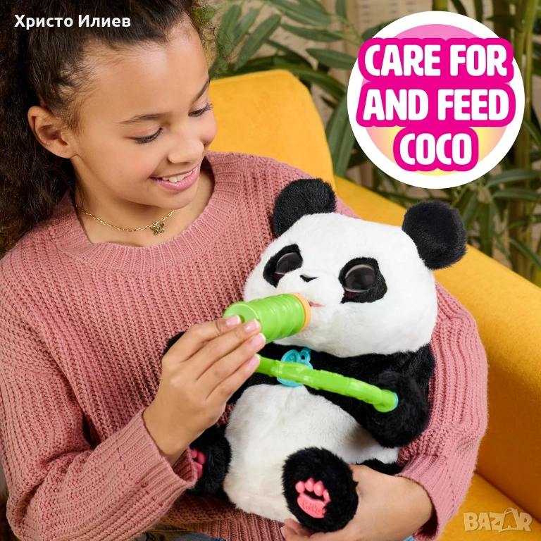 Интерактивната панда Коко не само забавлява, но и насърчава децата да развиват грижа, внимание и емоционална връзка с играчките си. Тя е с височина 26 cm и работи с 4 батерии тип AA, които са включени в комплекта.