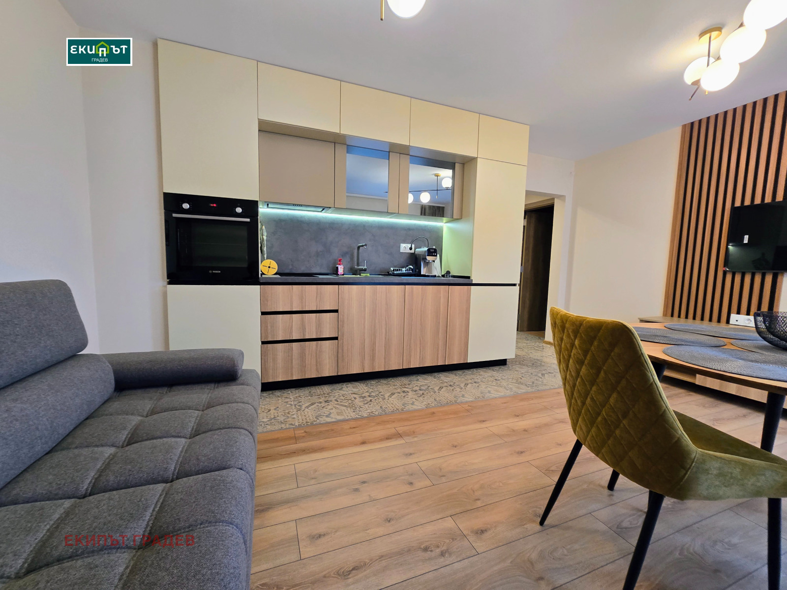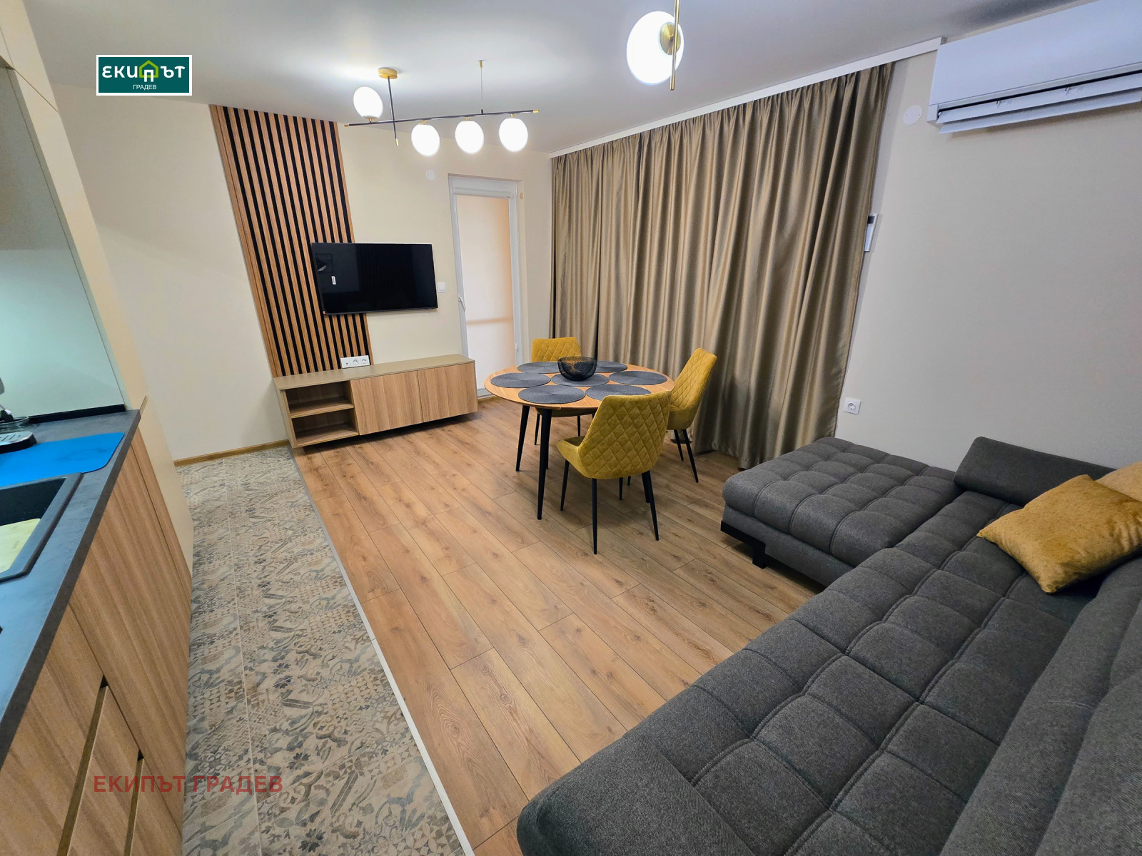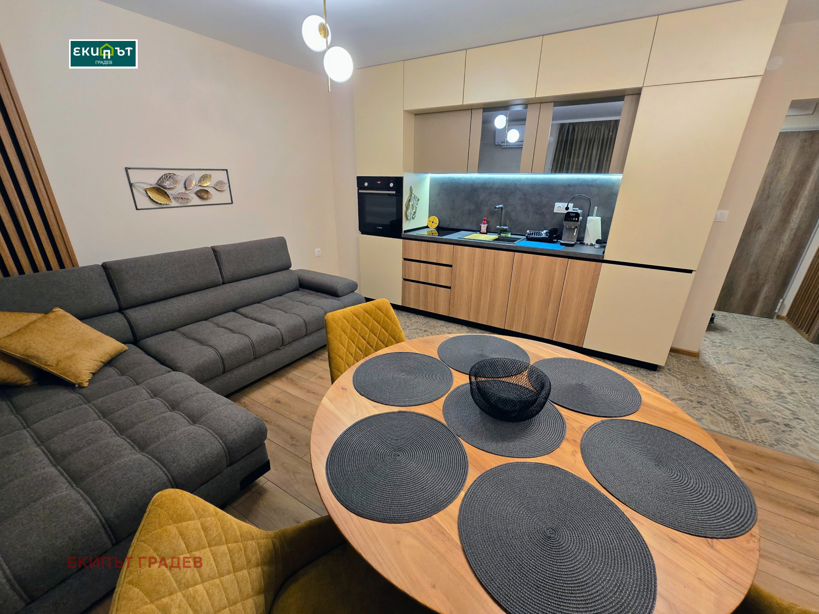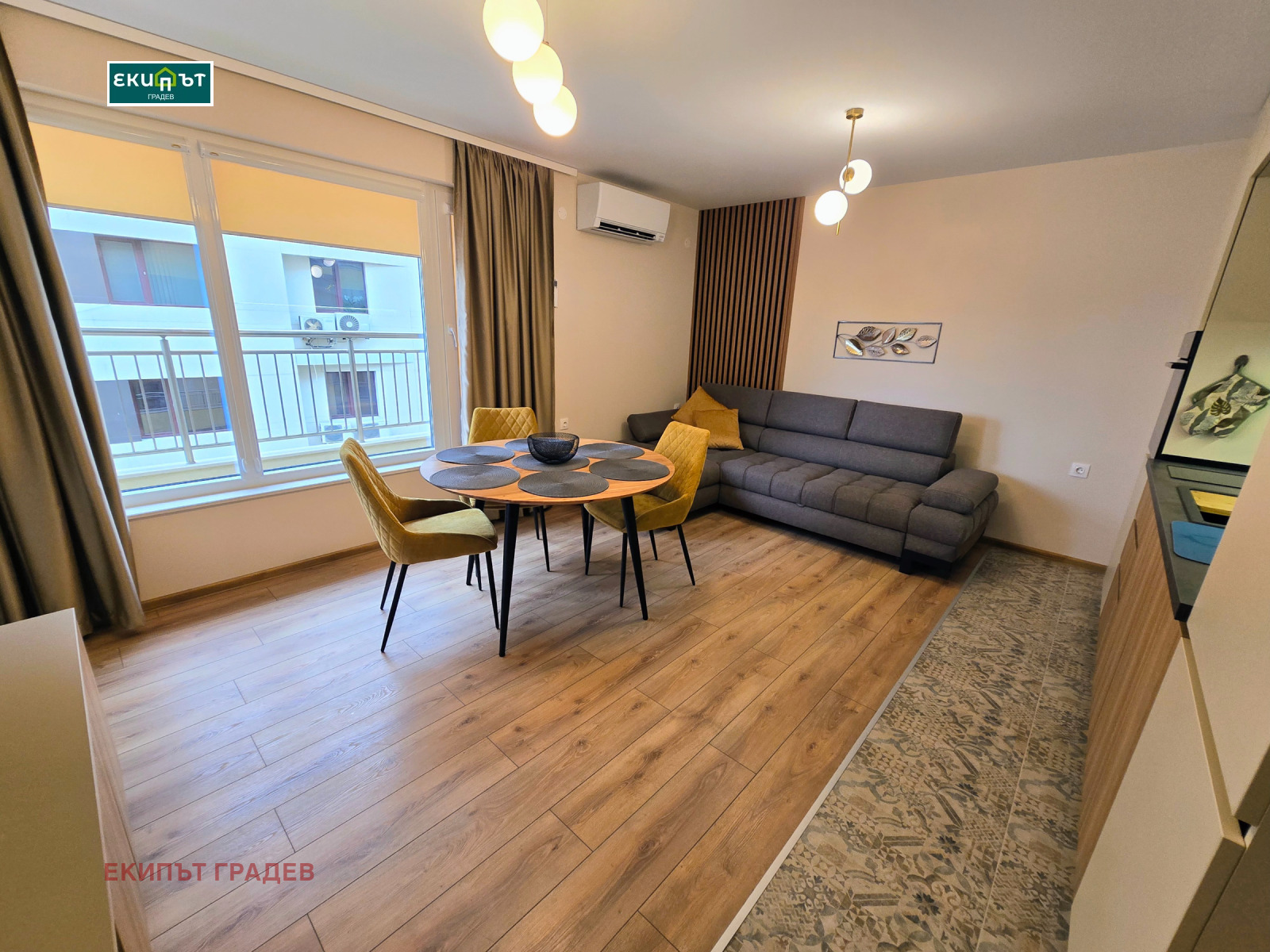 ДЕПОЗИРАН! Първи наематели! Търсят се сериозни и отговорни наематели, сам или двойка за чисто нов двустаен апартамент, напълно обзаведен, с нови мебели и гаранционни уреди. Сградата е с Акт 16 от 2025г и се намира срещу стадион Локомотив на бул. Сливница. Дневен тракт с мека мебел и маса за хранене, кухня с вградени уреди, които включват: вградена фурна, керамичен плот, съдомиялна машина, пералня и сушилня, кафемашина, прахосмукачка. Спалня с мебели по поръчка: огромен трикрилен гардероб, голяма спалня. Хубава тераса с градински комплект. Щори, комарници, пердета, посуда, за всичко е помислено.