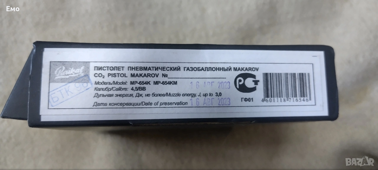 Въздушен пистолет Макаров МП-654КМ Baikal, снимка 1 - Въздушно оръжие - 54298067 Въздушен пистолет Макаров МП-654КМ Baikal, снимка 2 - Въздушно оръжие - 54298067 Въздушен пистолет Макаров МП-654КМ Baikal, снимка 3 - Въздушно оръжие - 54298067 1/3