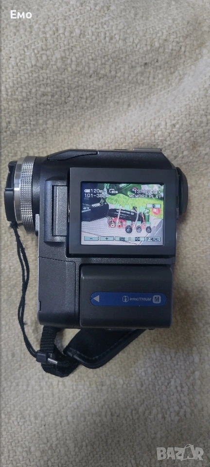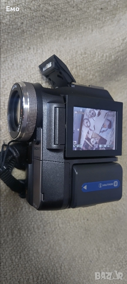 Много добро състояние - визуално и техническо, Carl Zeis Vario Sonar оптика, стабилизатор на образа Super SteadyShot, нощно заснемане, работи с miniDV касети и с Memory Stick карти, оригинална батерия.