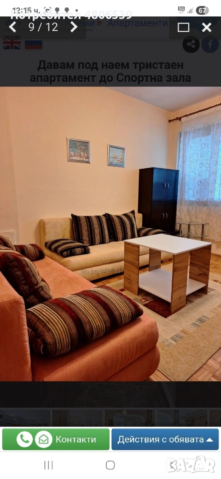 паркомясто!Собственик отдава за дългосрочно наемане, (Без брокери! ) от двойка, семейство, българи без домашни любимци, тристаен апартамент на втори етаж в тиха кооперация.