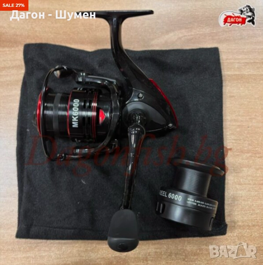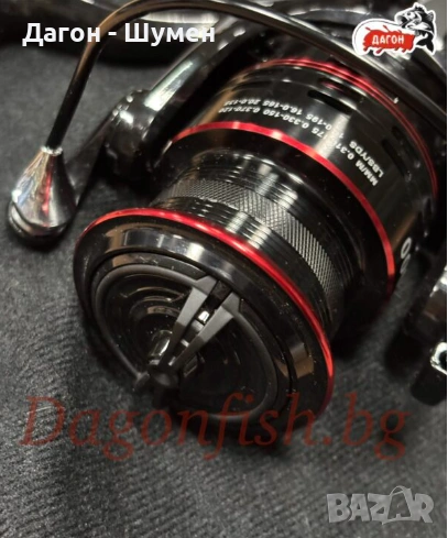 фидер макара ,подходяща и за риболов на Шаран и други едри риби с отлично качество на изработка и параметри , с много лек и плавен ход, дължащ се на системата от 9+1 лагера , прецизен аванс, с широка,плитка метална шпула, за далечно замятане и резервна пластмасова дълбока шпула ,солидна метална дръжка с удобна ръкохватка