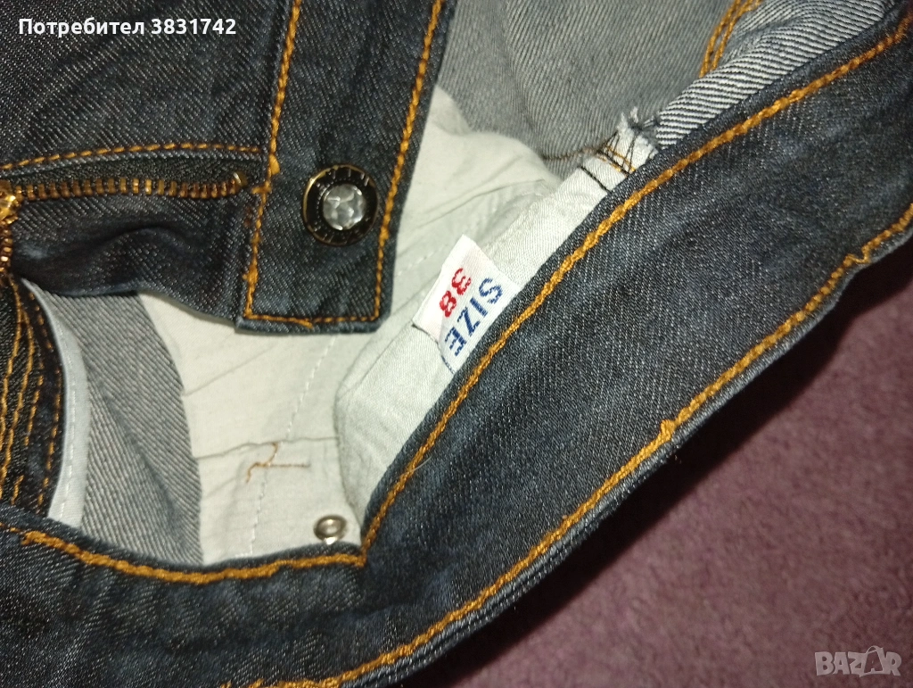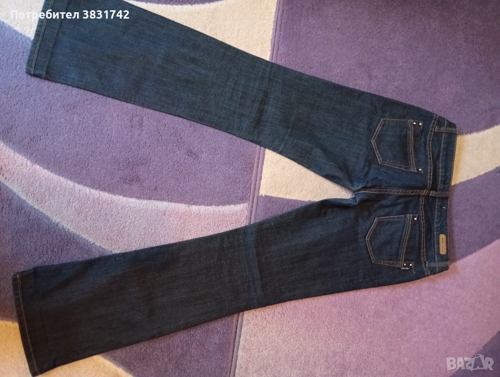 Дънки с ниска талия и разкроен крачол. Еластични, размер 38 (като за панталон), отговарят на 27 размер за дънки. Цвят индиго