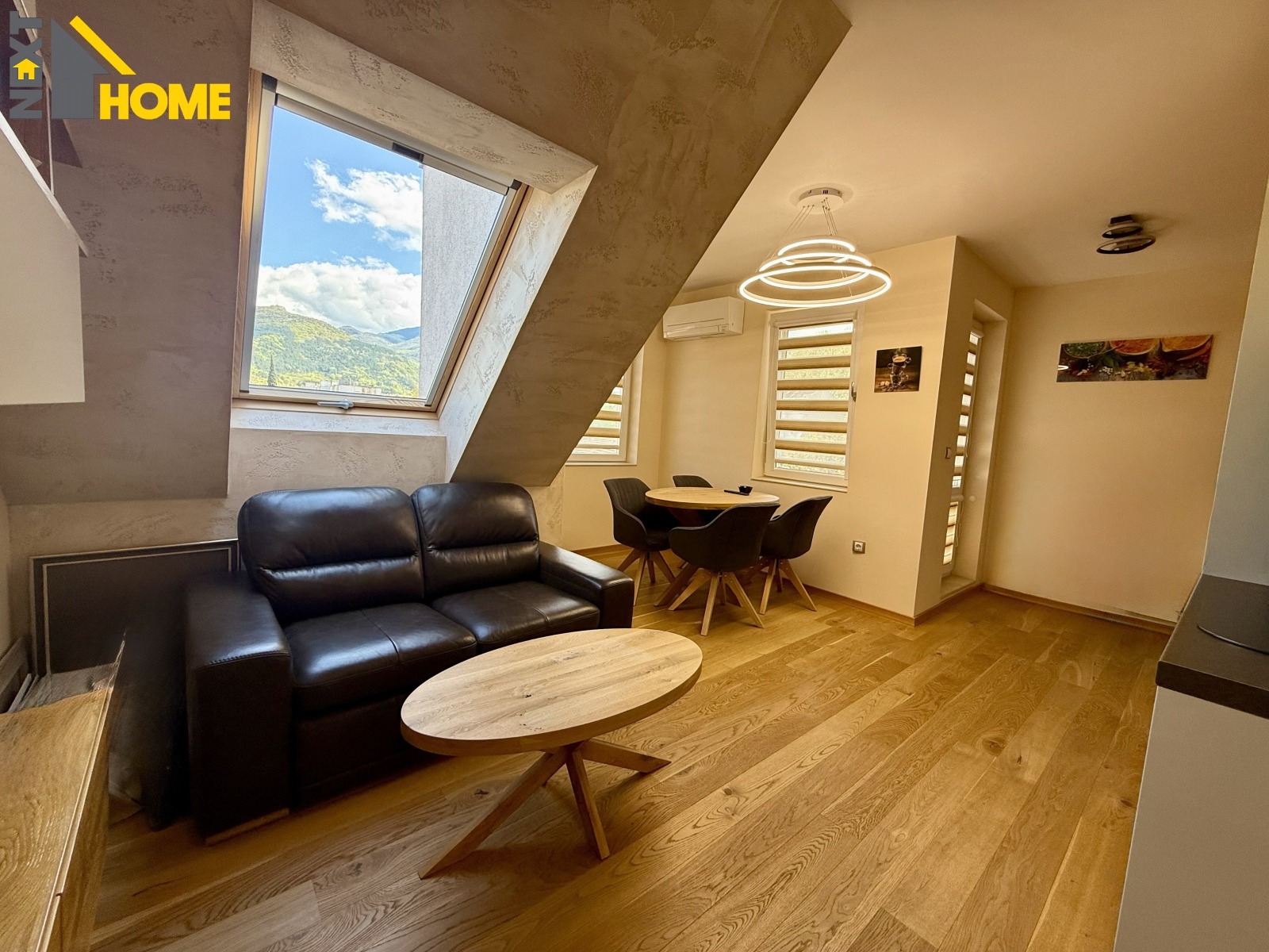 🛋️ Дневна зона: Светло пространство с кухня и кът за хранене.