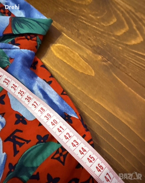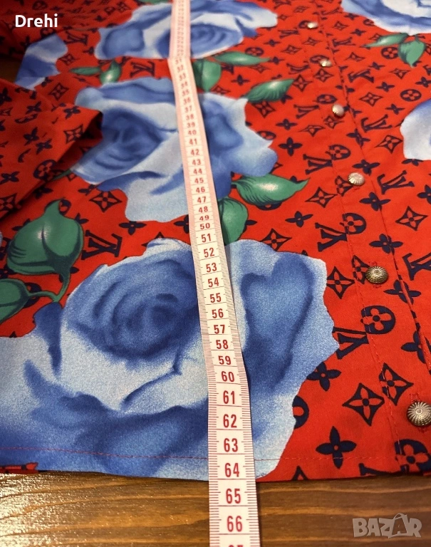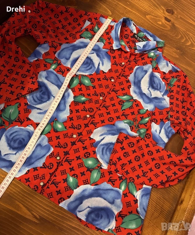 Дамска елегантна риза в червено със сини рози размер М свободно падаща