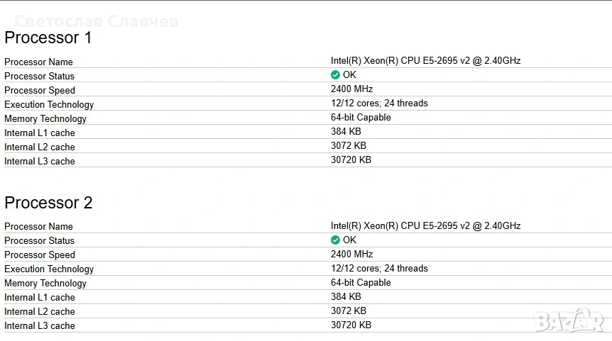 2 * E5-2695 V2 12 ядра/ 24 нишки всеки( общо 24 ядра и 48 нишки)