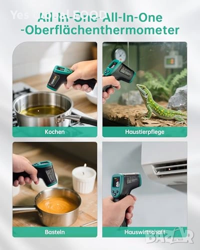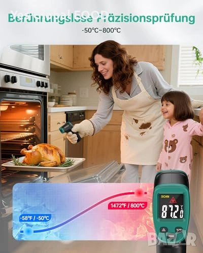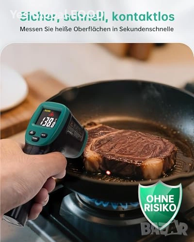 Уредът позволява бързо и безопасно измерване от разстояние чрез лазерен прицел, без нужда от контакт с повърхността. Осигурява точни резултати и лесно разчитане чрез дигитален дисплей.