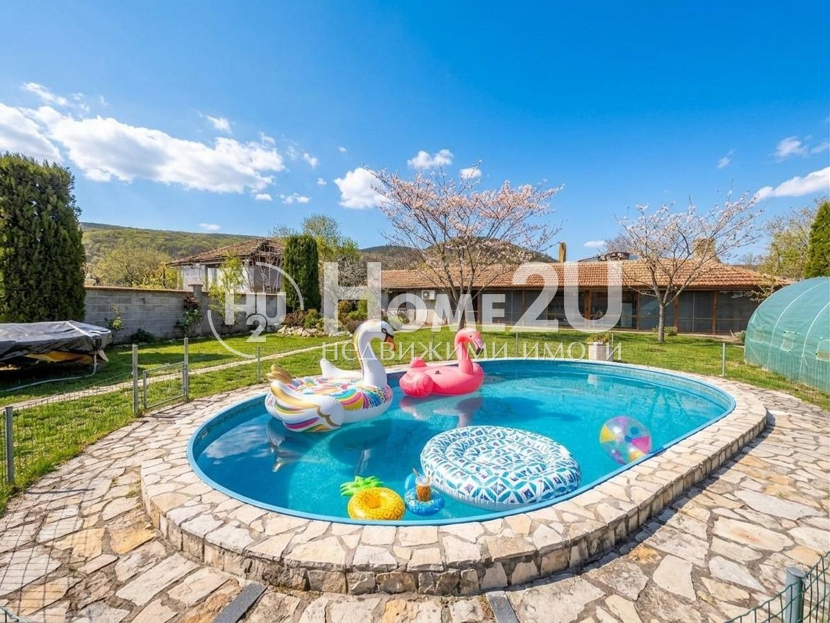 БАСЕЙН! МЕХАНА! ДВОЕН ГАРАЖ! ДВА ЕТАЖА! СЛЕД РЕМОНТ! ОБЗАВЕДЕНА! РЗП 196 КВ.М.! 900 КВ.М. ДВОР! 20 МИНУТИ ОТ ВАРНА!