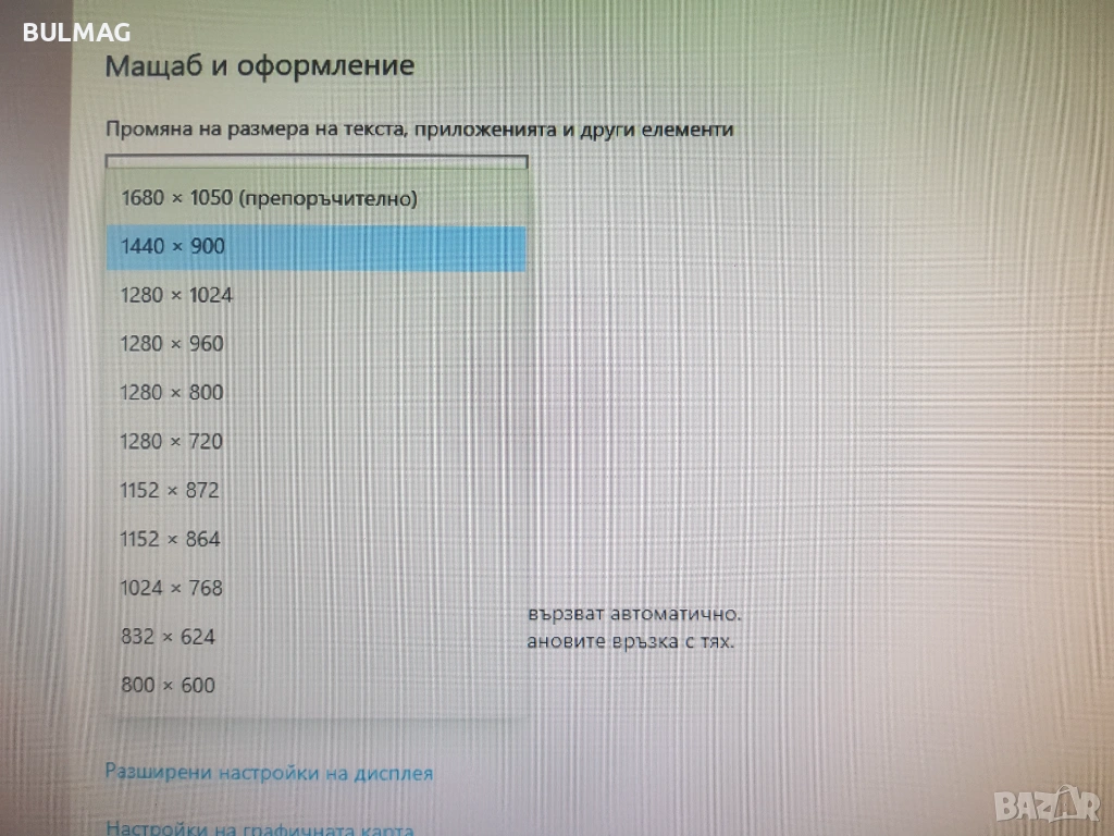 Резолюция на дисплея: