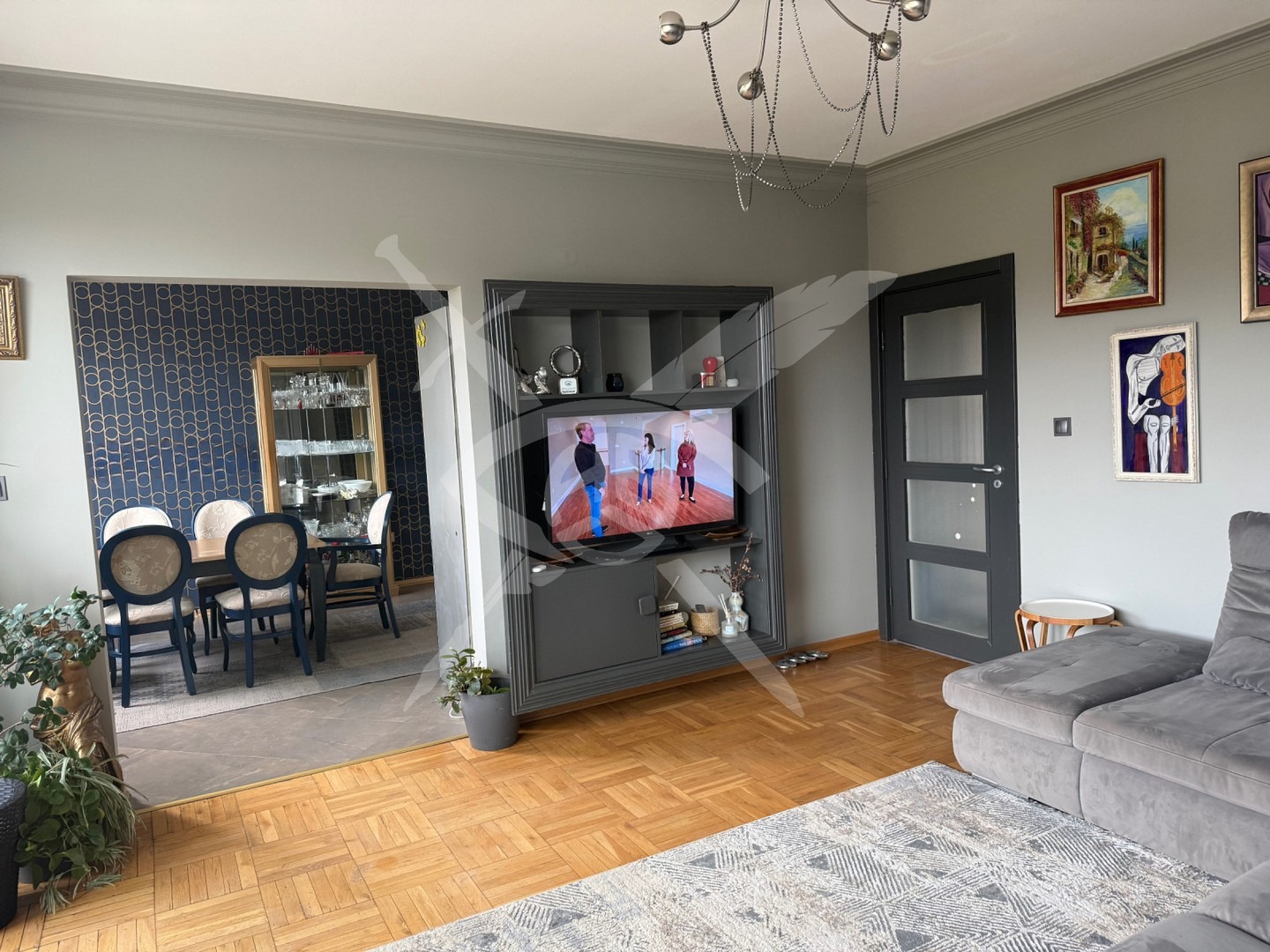 РАЗПРЕДЕЛЕНИЕ: Жилището разполага с площ от 100 кв.м. разпределена във входно антре, кухня с трапезария, хол, две спални, баня и отделна тоалетна.