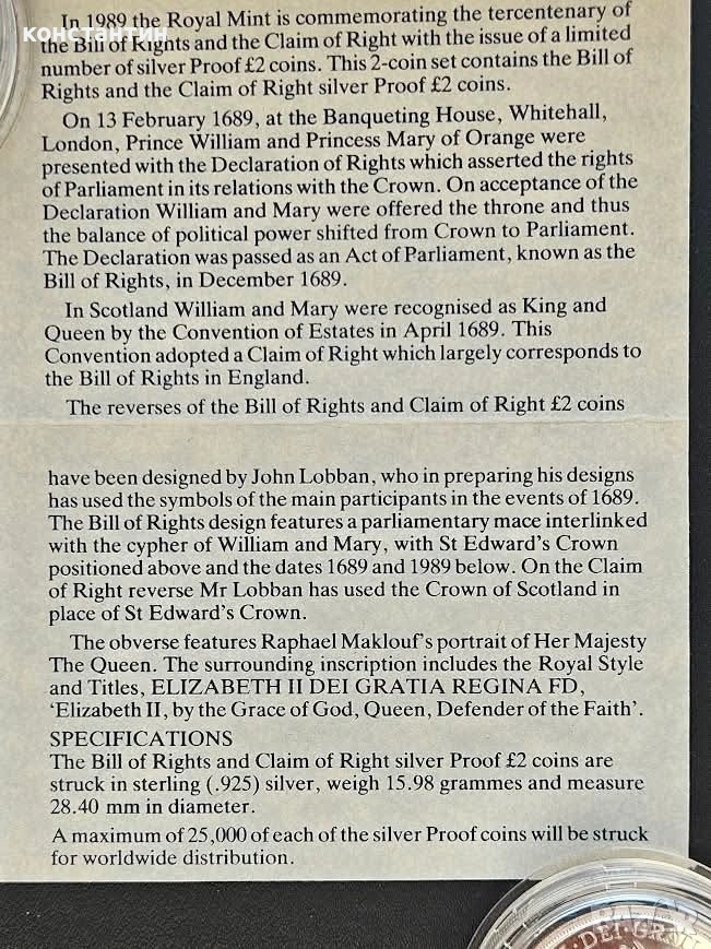 Великобритания - Кралица Елизабет II Сет от две сребърни прууф монети в оригинална опаковка с тираж 25,000 броя