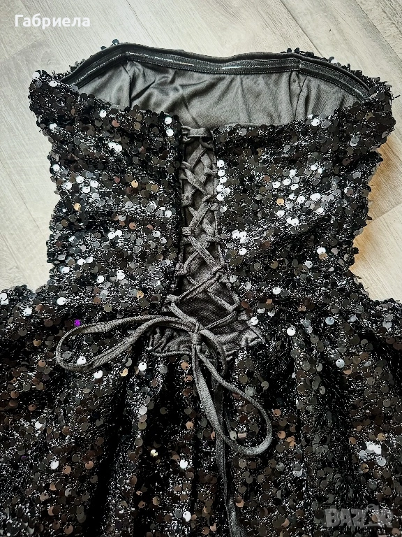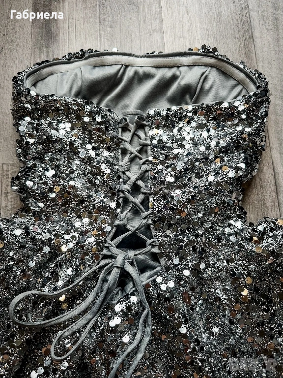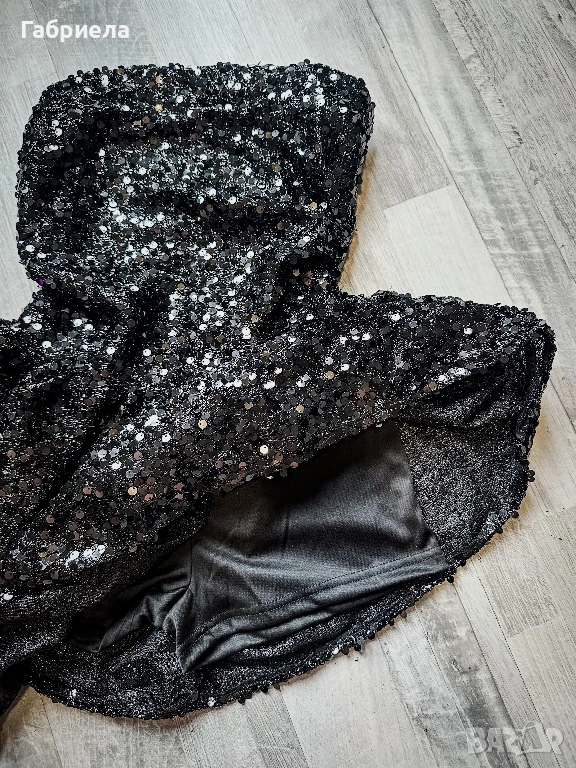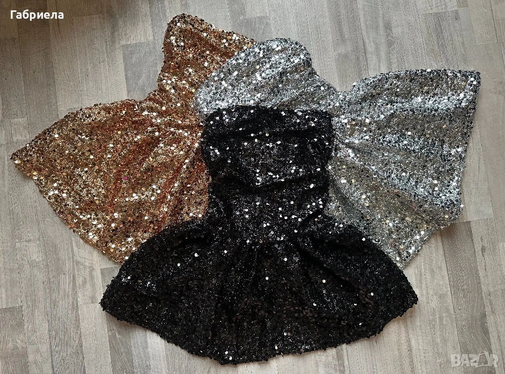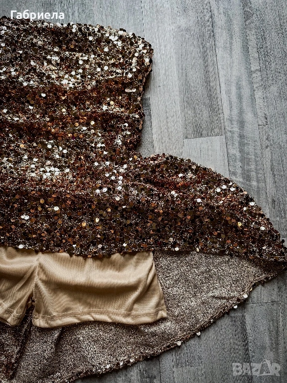 💫 Ефектна парти рокля обсипана с пайети, които блестят при всяко движение. Роклята е с връзки и пришити панталонки под полата за максимално прилягане и комфорт.
