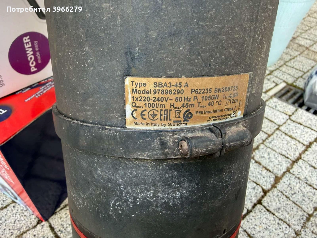 Потопяемата помпа Grundfos SBA 3-45 A, снимка 1 - Водни помпи - 54300356 Потопяемата помпа Grundfos SBA 3-45 A, снимка 2 - Водни помпи - 54300356 Потопяемата помпа Grundfos SBA 3-45 A, снимка 3 - Водни помпи - 54300356 1/3