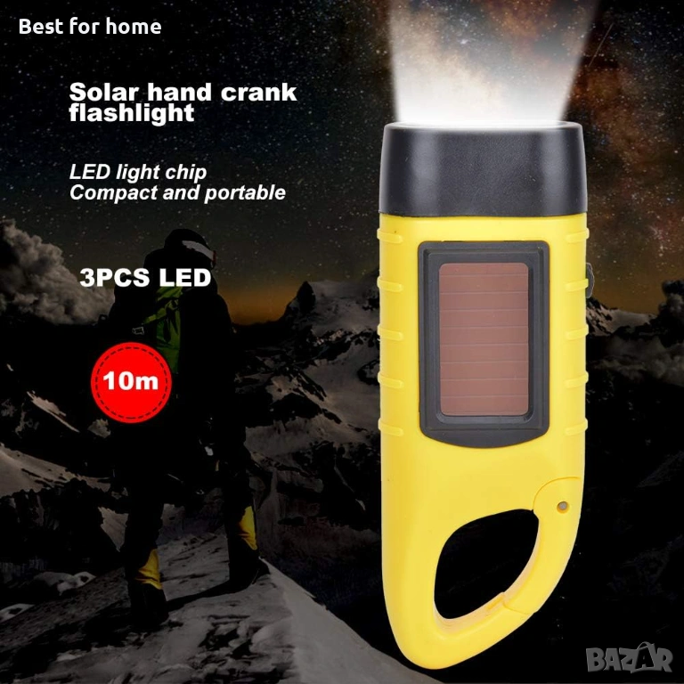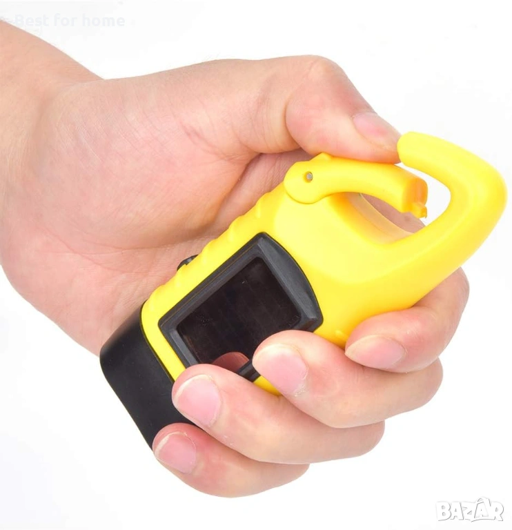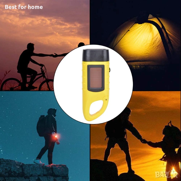 Соларно фенерче Pilipane, ръчно, със слънчева батерия, акумулаторно фенерче IPX6, водоустойчиво, LED, аварийно осветление, динамо фенерче за къмпинг, катерене, раница, туризъм, жълто, 1 час работа.