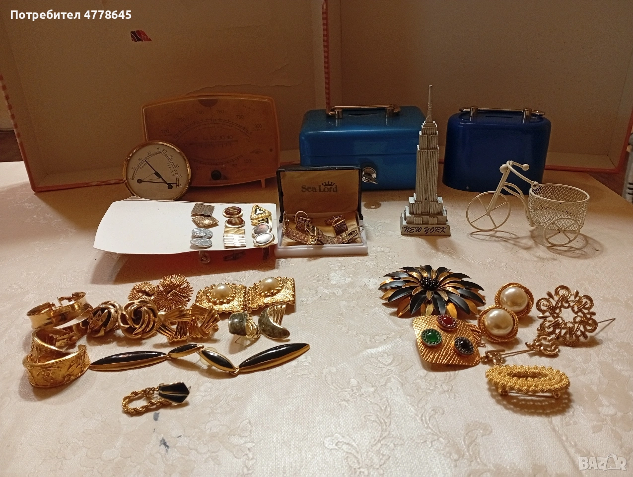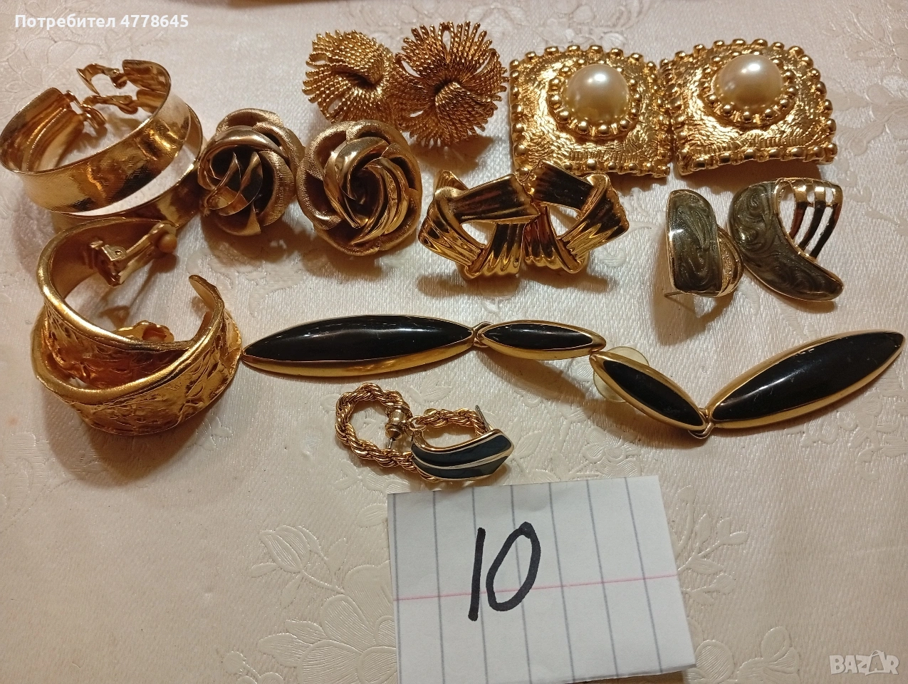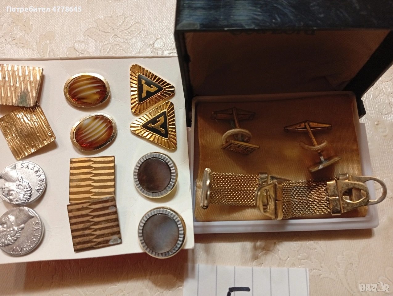 лот ретро,обеци бройки и ръкавели от50-60г.на миналия век.позлатени.цените са обявени общо за лот.касика и др.при връщане на стока е за сметка на купувача.