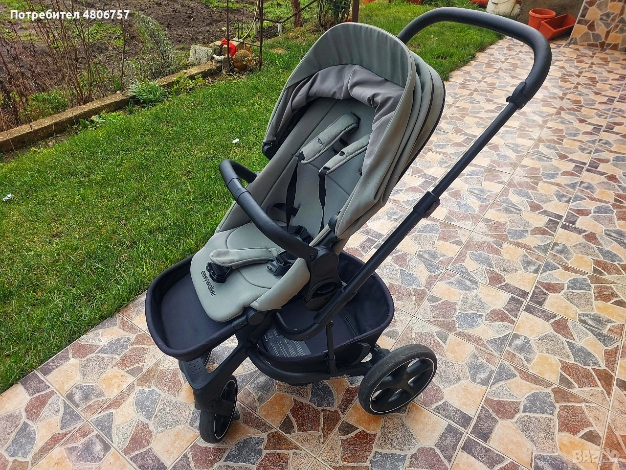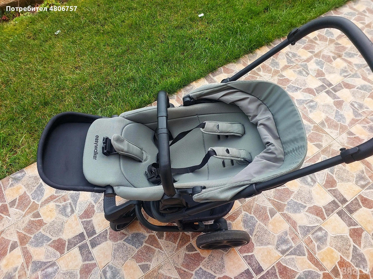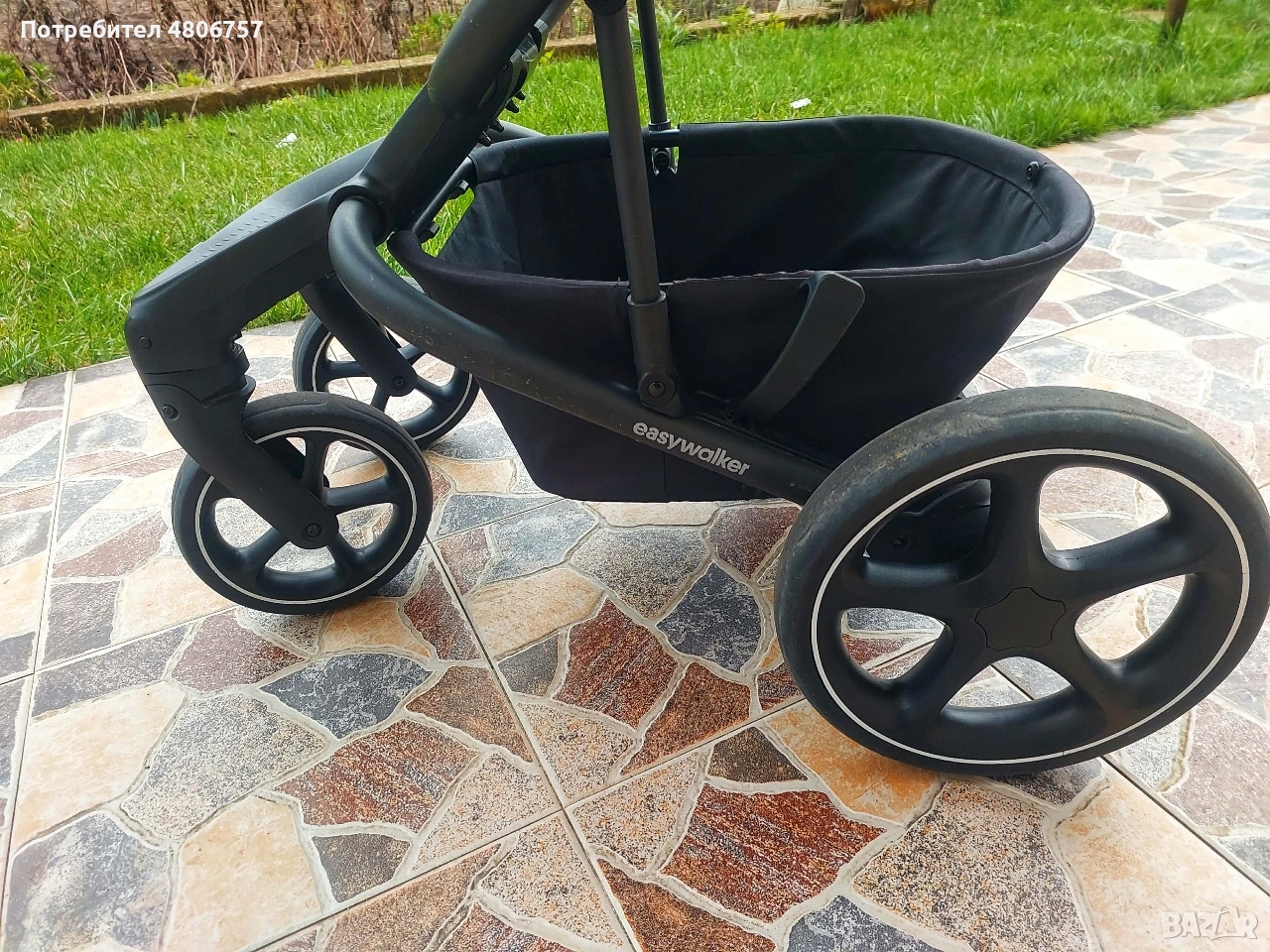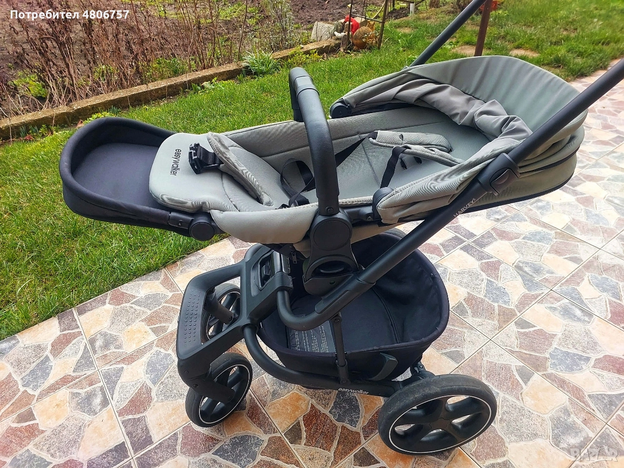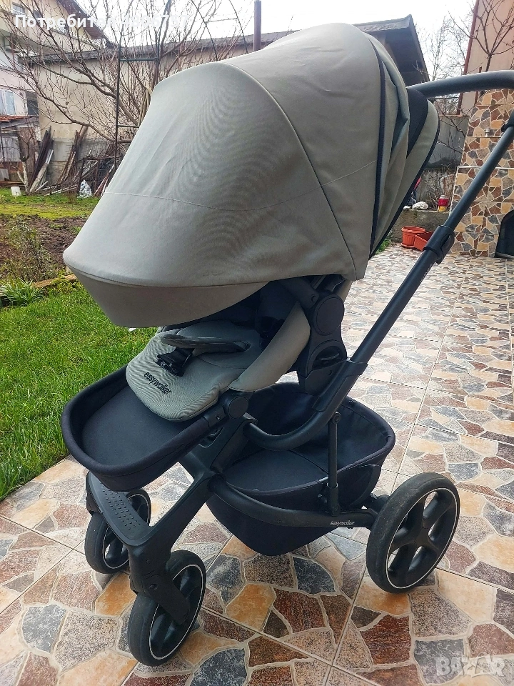 количка за близнаци или за породени деца; Кош за новородено с оптимални размери: товароносимост – 9 kg, може да се използва и като допълнително легло през нощта. Разполага с комфортен матрак с дебелина 3 cm, чийто калъф се пере. Разполага с покривало, допълнителна секция с вентилационен отвор на сенника и втори допълнителен вентилационен отвор; Седалка за периода 6 м+: Тя разполага с висока позиция за по-близък контакт с детето и светлинен индикатор за закрепяне. Може да се постави по посока на движението или към родителя, само с едно движение. Разполага с допълнителна секция на сенника, с козирка и прозорче за наблюдение, предварително оформени раменни подложки и ергономичен колан. Удобна и лесна за регулиране облегалка. Може да се сгъне до изключително компактни размери и е супер лека; Детска количка Easywalker - Harvey 5 има иновативна система за аксесоари, която позволява да се прикрепи към предпазния борд любим аксесоар само с един клик. Размери: Височина от земята до дръжката в най-разтегнато положение: 110 cm; Ширина на задните колела: 59 cm; Размери в сгънато положение със седалката: 77 х 59 х 47 cm; Размери в сгънато положение без седалката: 71 х 59 х 28 cm; Тегло на количката със седалка за след 6 месец или кош за новородено: 11 kg; Използваема до 22 kg. СЪСТОЯНИЕ:Използвано. Няма забележки, има нормални следи от употреба. Към нея има няколко чифта чаршафи за бебешкия кош, комарник(черен),дъждобран и подложка за детския кош( Jukki), които не са на марката.