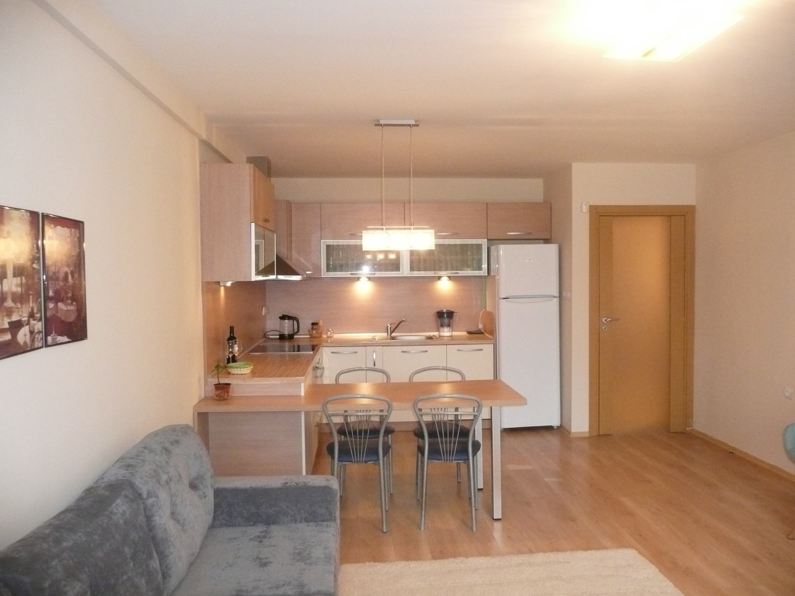 Разпределение: просторна дневна, функционално свързана с трапезария и кухненски бокс, две самостоятелни стаи, дрешник, баня с тоалетна, тераса.