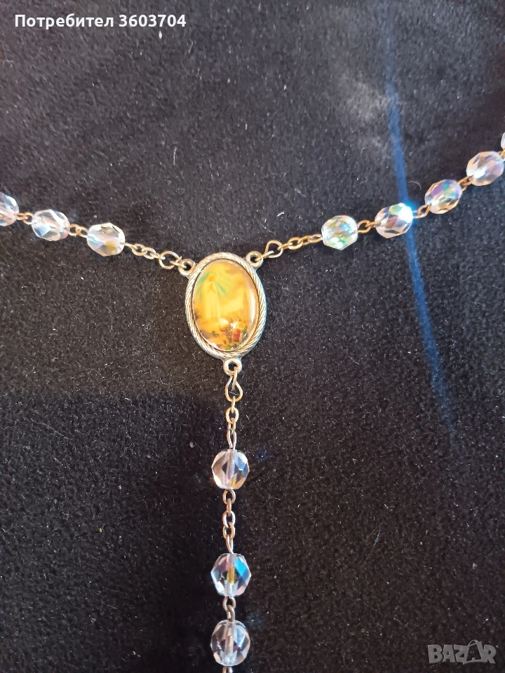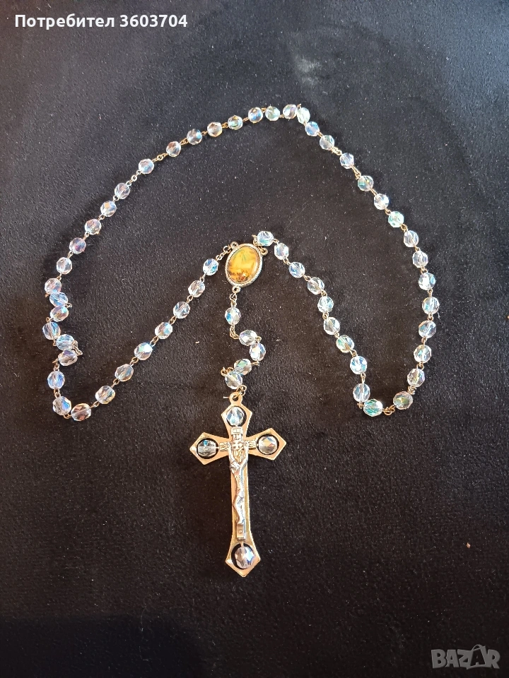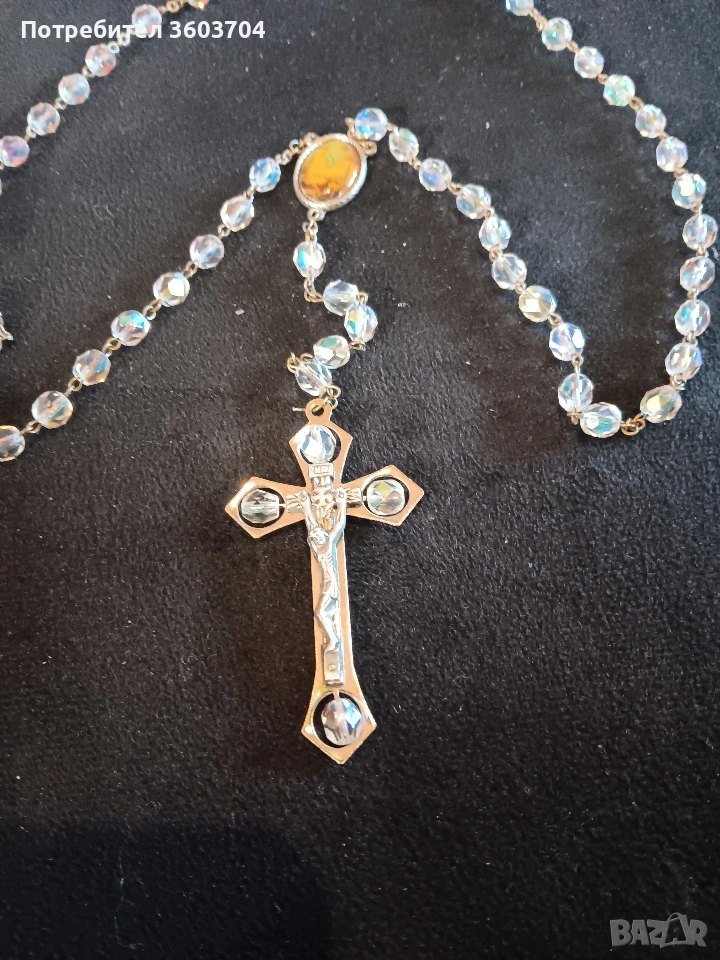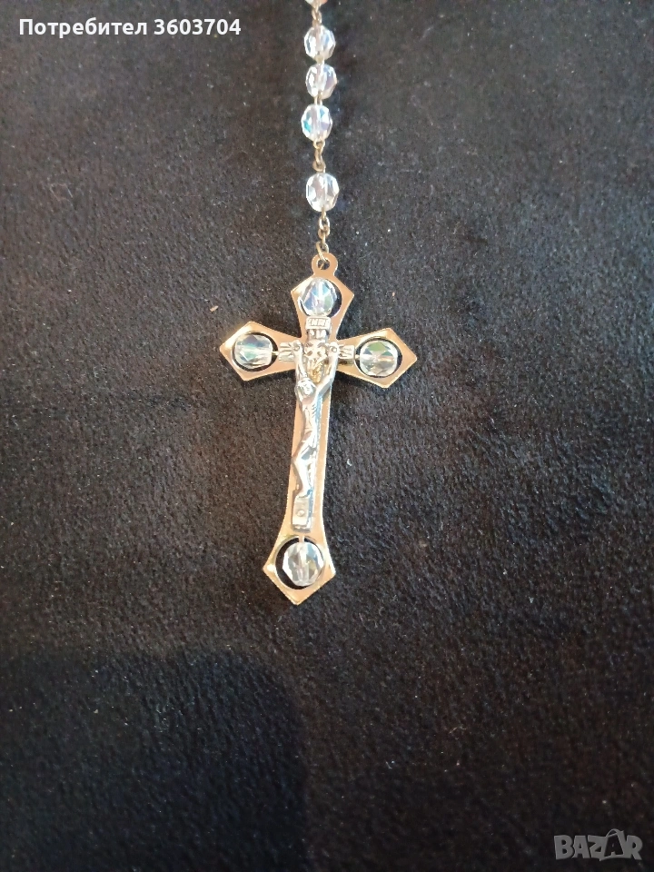 кръстче с верижка от кристални елементи самият кръст е изработен основата му е стоматологична сплав разпятието е сребърно може да си ползва за носене може да се ползва за броеница може да използва за украса за подарък кой както сметне за добре на една приемлива цена Благодарим ви за вниманието Разгледайте и другите мои обяви