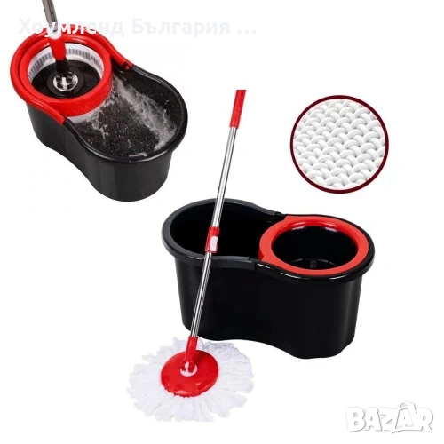 Предтавяме ви последният модел въртящ се моп, заедно с алуминиева центрофуга за пране и кофа в комплект Spin Mop. Включва подочистачка с автоматизирана въртяща система и центрофуга в кофата за почистване и сушене на микрофибърна подложка. Със своята революционна 360 ° въртяща се микрофибърна подложка и мощна система за завъртане, не се налага докосването на замърсената подложка. С натискане на дръжката, микрофибърната глава автоматично се завърта, като водата и мръсотията се отделят. Spin Mop e с подвижна до 90 градуса дръжка и 360 градуса въртяща глава, с която с лекота почиствате и най-трудно достъпните места. След почистването микрофибърната подложка се отделя от 360 градусовата въртяща глава и може да бъде изпрана в пералня за многократна употреба. Улеснете почистването у дома със Spin Mop.