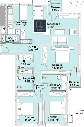Три спални 14.80 кв.м, 13.15 кв.м и 12.00 кв.м