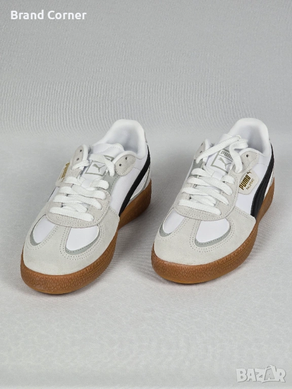 Продавам чисто нови, оригинални маратонки Puma Palermo Moda, в класическа цветова комбинация – бяло и черно с кафява "gum" подметка. Моделът е вдъхновен от футболната култура на 80-те, пречупена през модерната стрийт естетика. Изключително леки, удобни и подходящи за всекидневието.