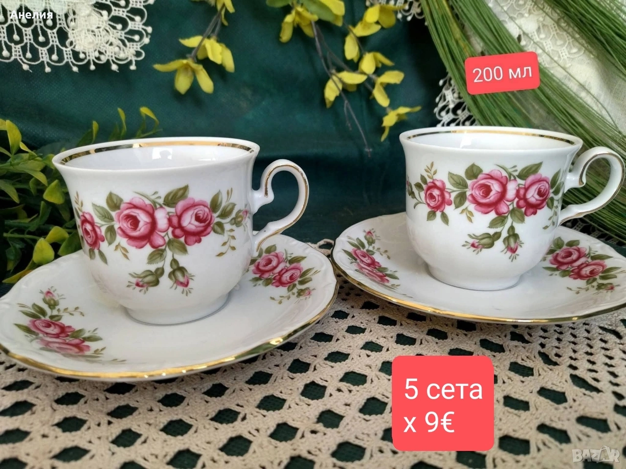 🌹4 сета същите х 5.50€/10.76 лв, заради леки забележки ( леко чукнато и забележка по вътрешния кант на 2 чашки) Не е много и не личи особено.