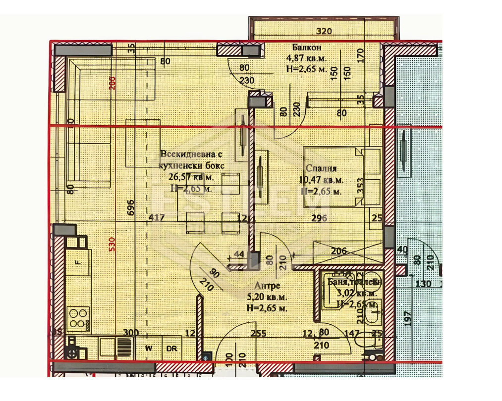 ➤ Входно антре, голяма всекидневна с кухня, спалня и просторен балкон.