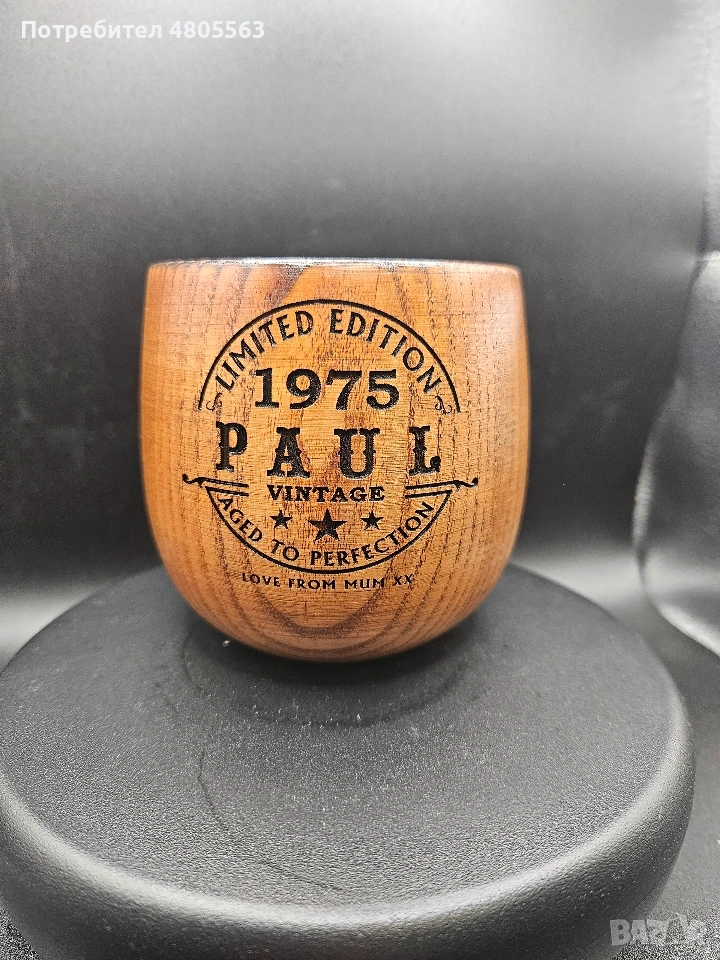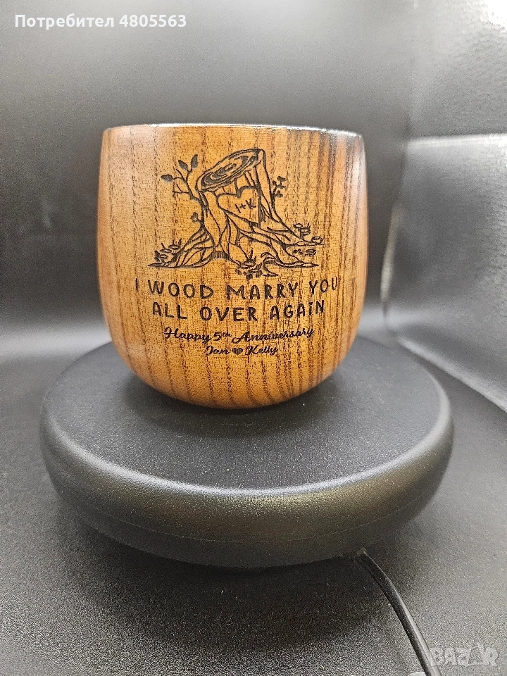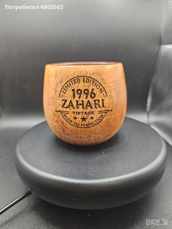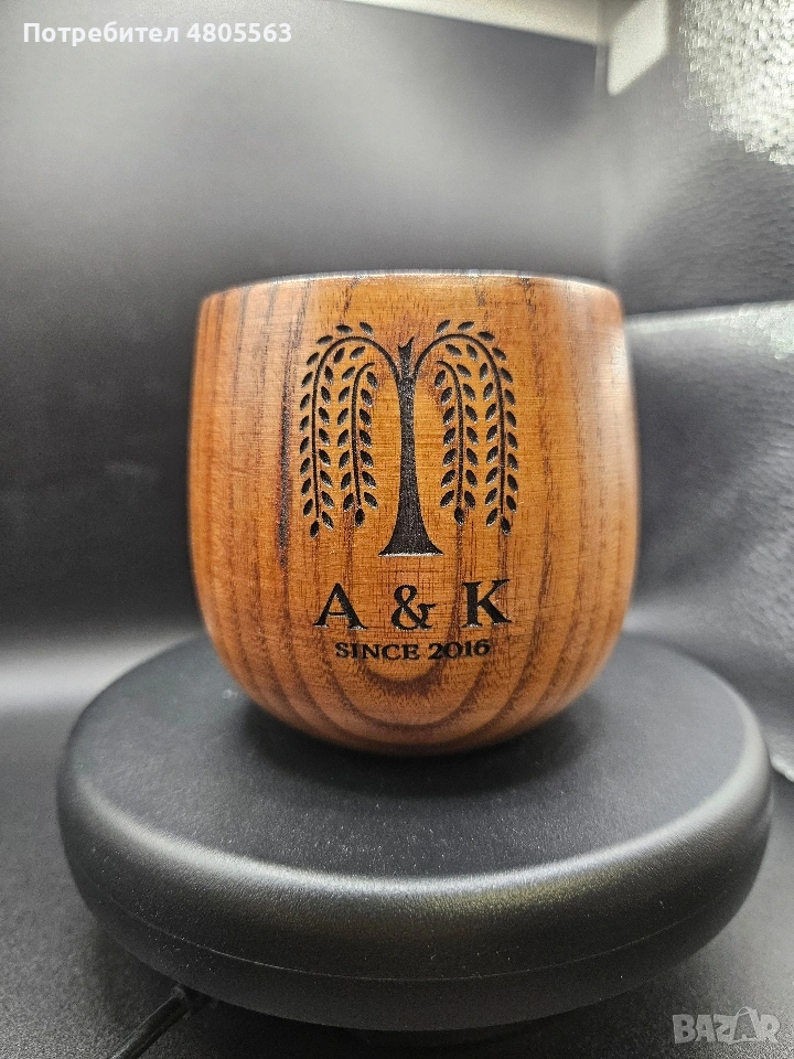 Гравирана дървена чаша. Персонализиран подарък. → Обява 54302557