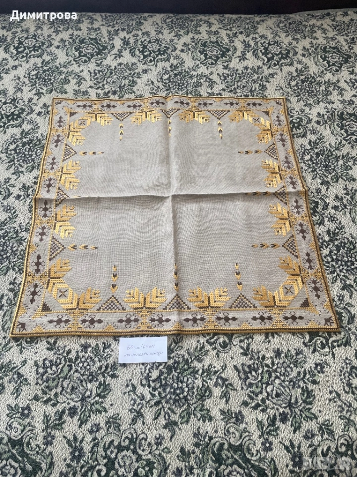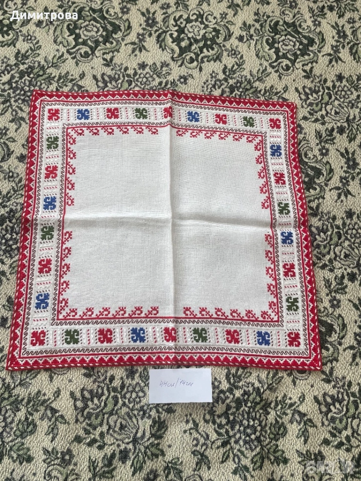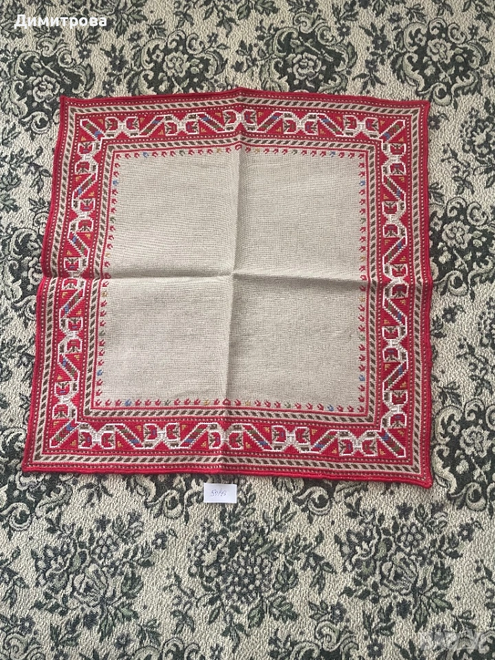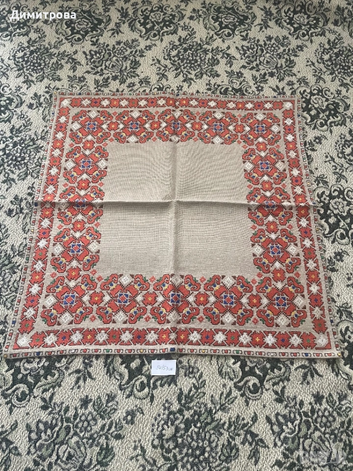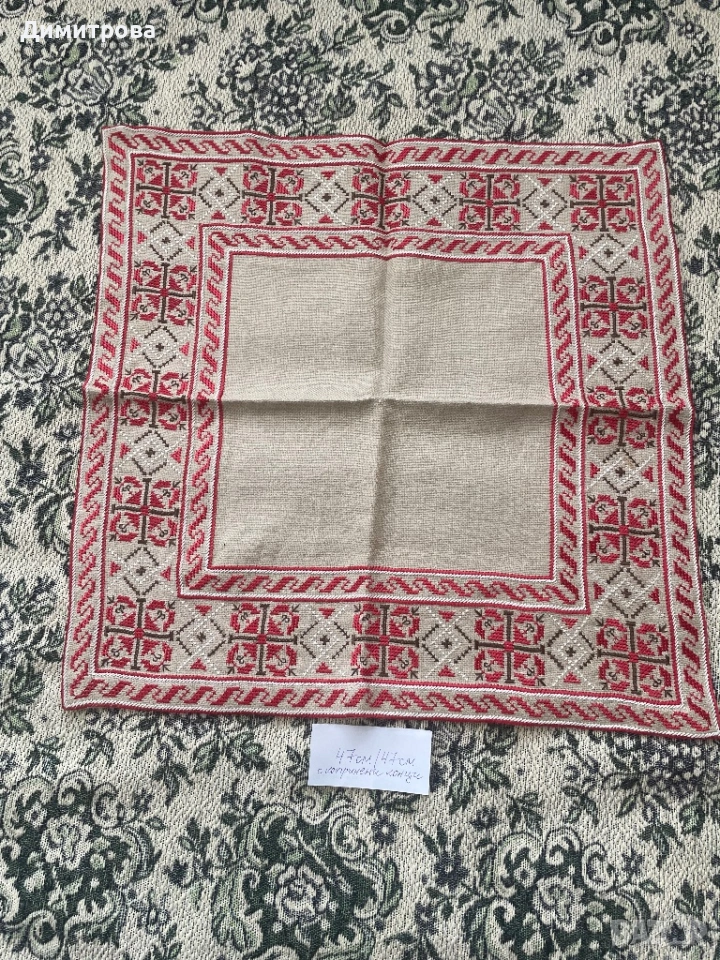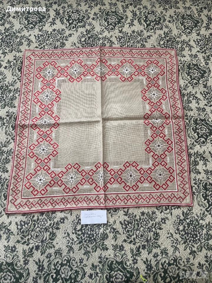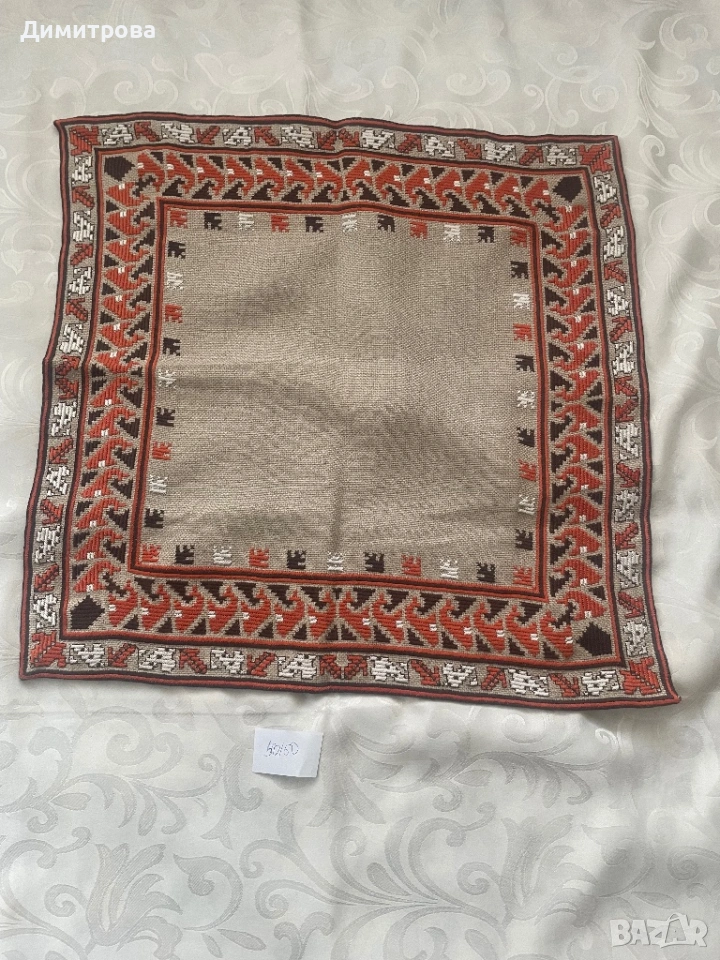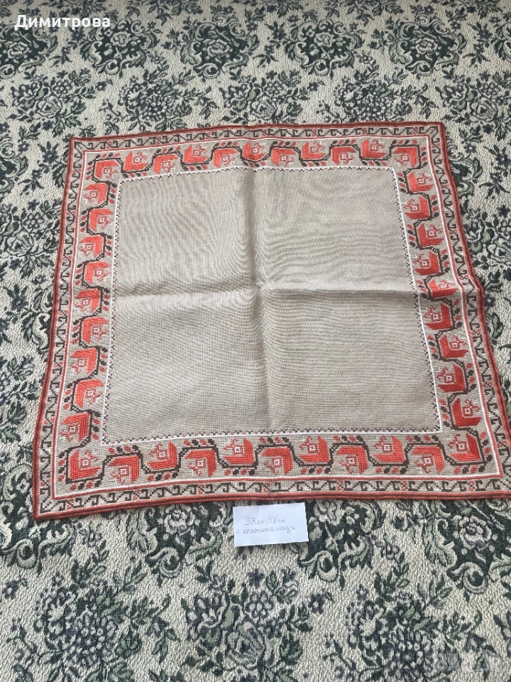 7 . Каре на ленена панама бродирано с копринени конци. Снимка 7. Цена 55 €/107.57 лв.