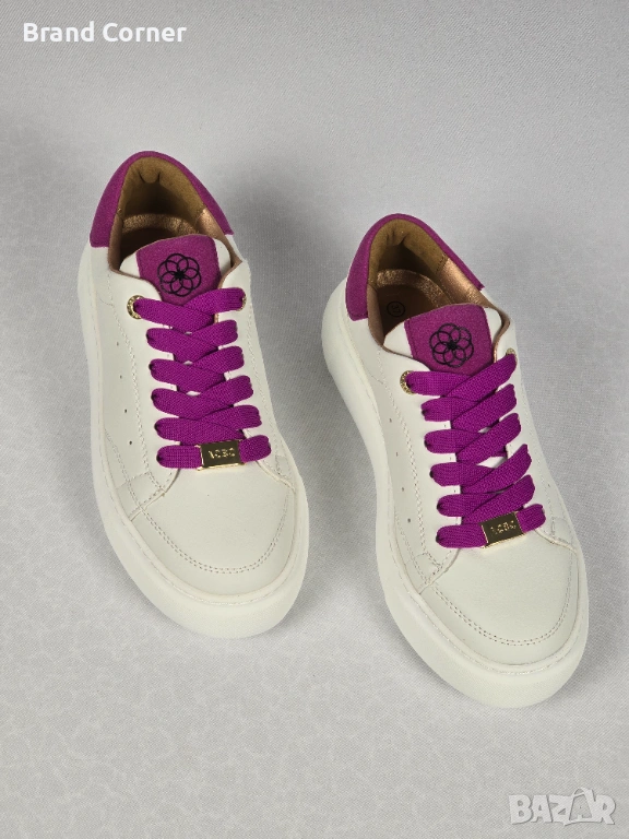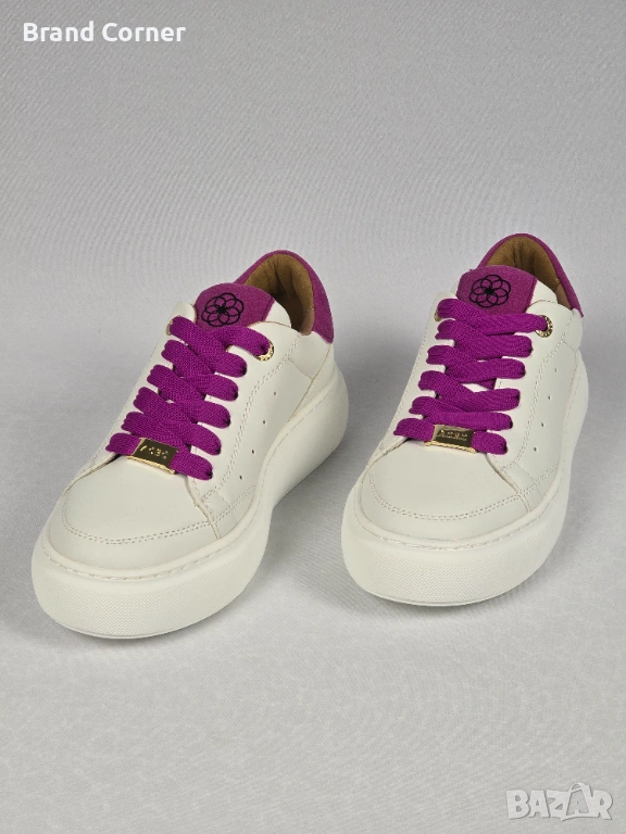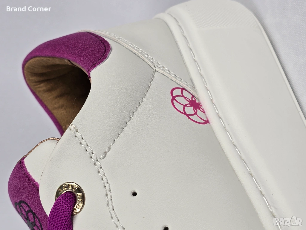 Продават се нови дамски обувки ACBC, размер 37, в много ефектна комбинация от бяло, наситено фуксия/лилаво и златисти детайли. Моделът е тип нисък дамски кец/сникърс – удобен, модерен и лесен за съчетаване както с дънки и спортно-елегантна визия, така и с рокля или по-casual аутфит.