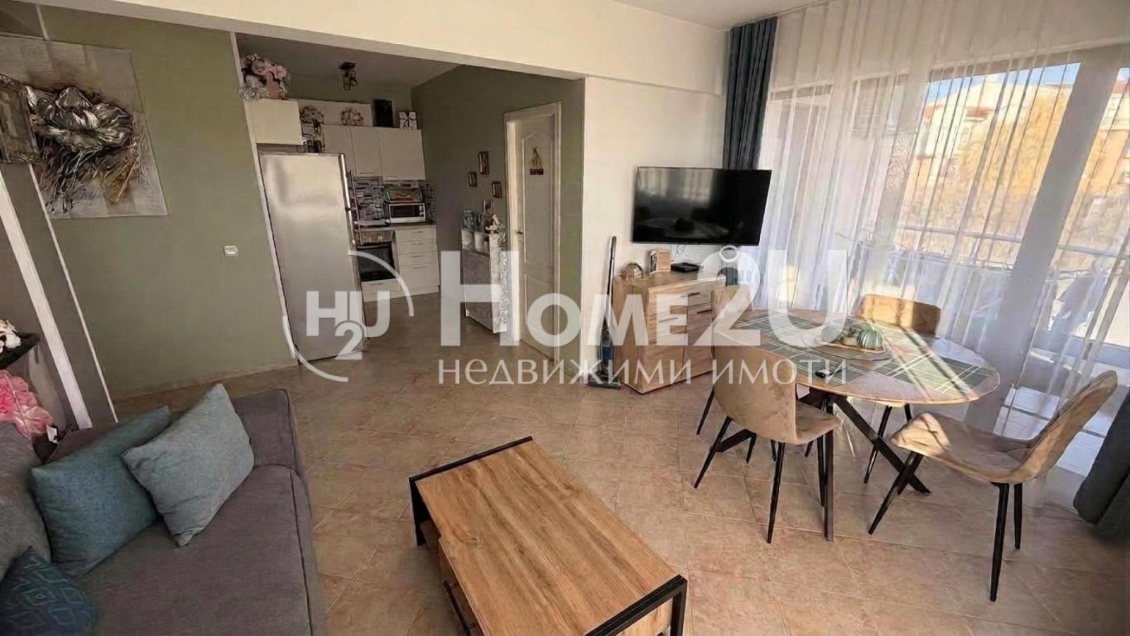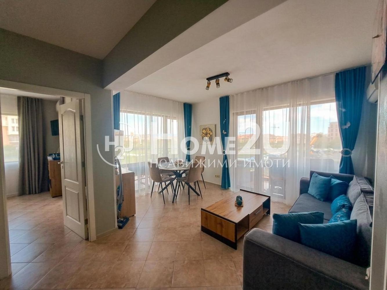 Home2U недвижими имоти предлага за продажба слънчев ТРИстаен апартамент в затворен комплекс в Равда.