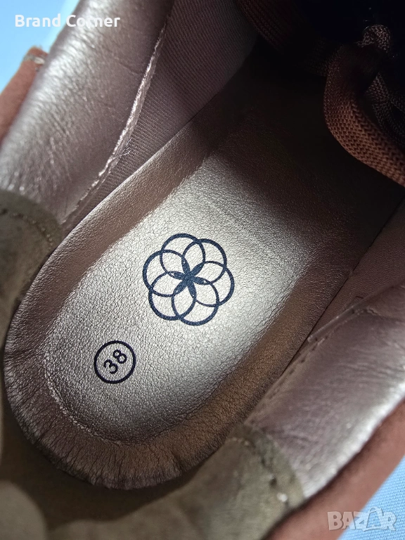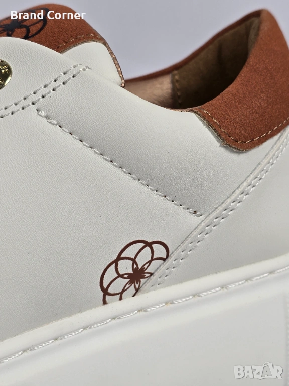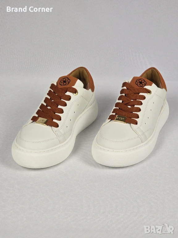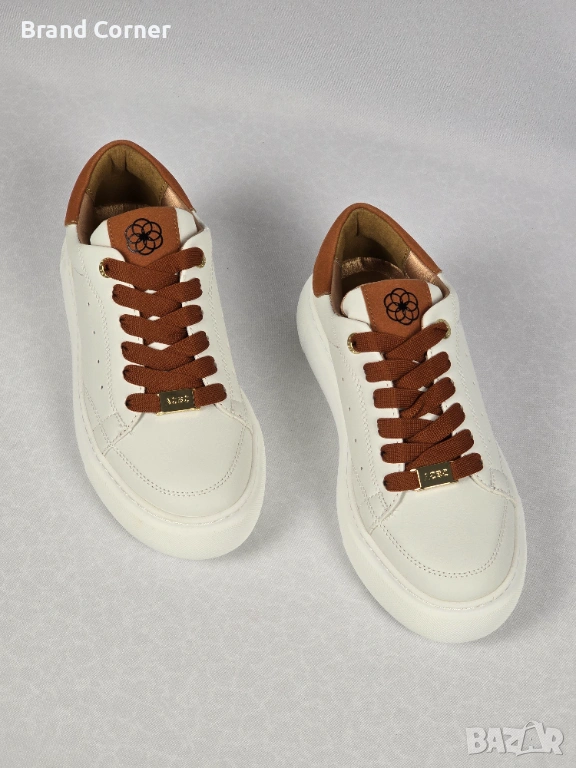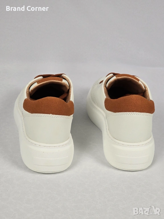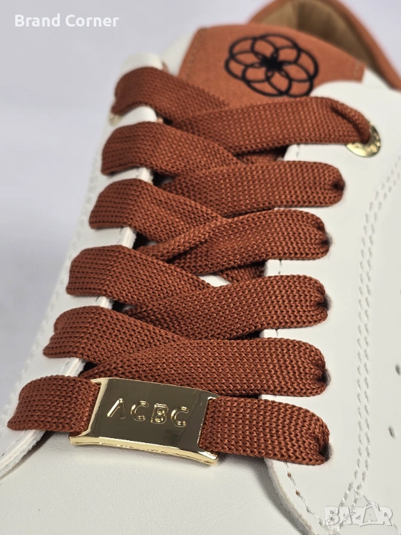 Нови дамски сникърси ACBC, размери 37 и 38. Моделът е стилен и много свеж – в основен цвят екрю/бяло с керемидено-кафяви връзки и детайли около езика и петата. Обувките са с модерна ниска спортно-елегантна визия, подходящи както за ежедневие, така и за по-изчистени casual комбинации.