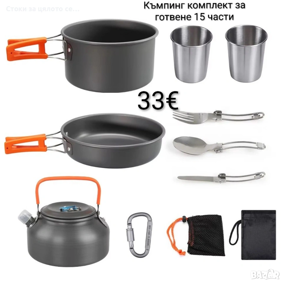 Къмпинг комплект за готвене 15 части – Пълен сет от анодиран алуминий