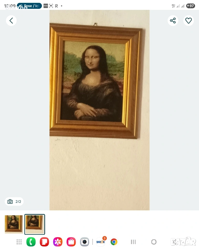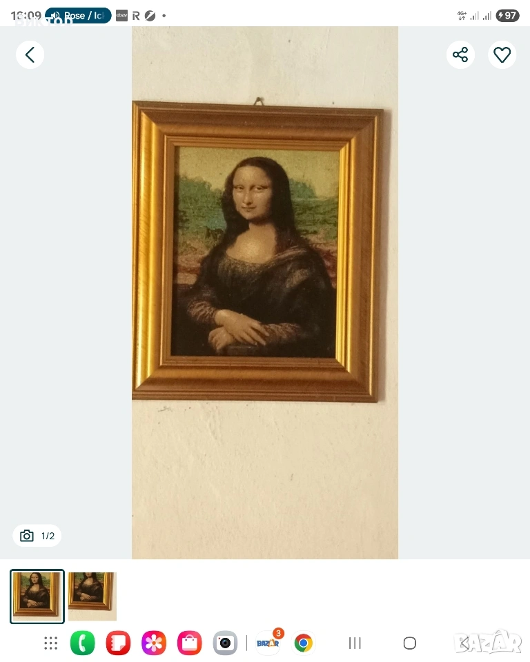 Гоблен Мона Лиза красив в рамка. За размери на лично съобщение! Много по-красив е на живо, но не се вижда добре от снимката. Имам много гоблени, почитател съм на изкуството, този е на вилата и нямам място а имам други.