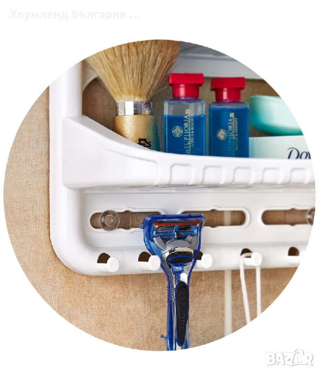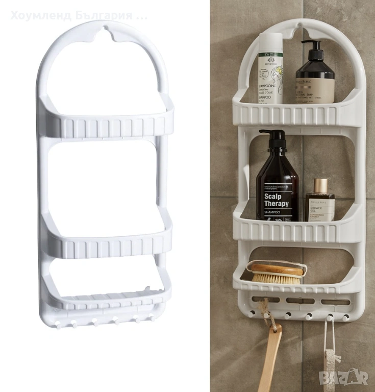Удобна и лесна за поставяне етажерка на три нива за баня. Фиксира се с помощтта само на еднин единствен болт (и/или дюбел), а в долната си част на гърба си притежава и два вакума за по стабилно фиксиране на стената.