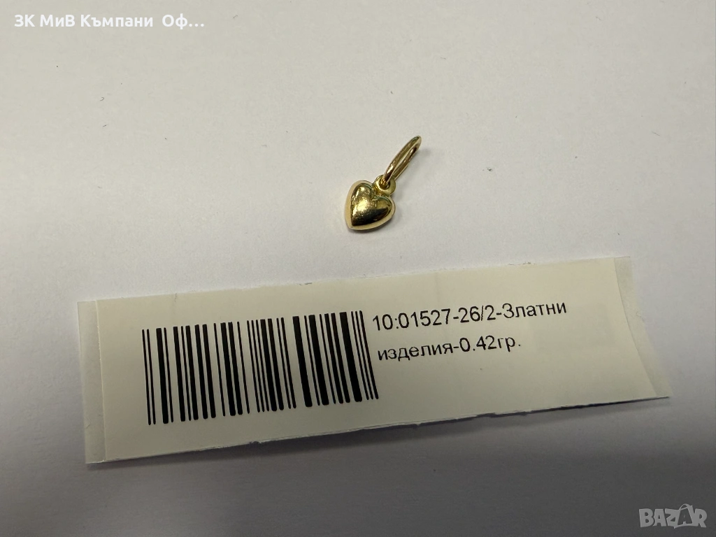 Златна висулка "Сърце" - 0.42гр. - 14К